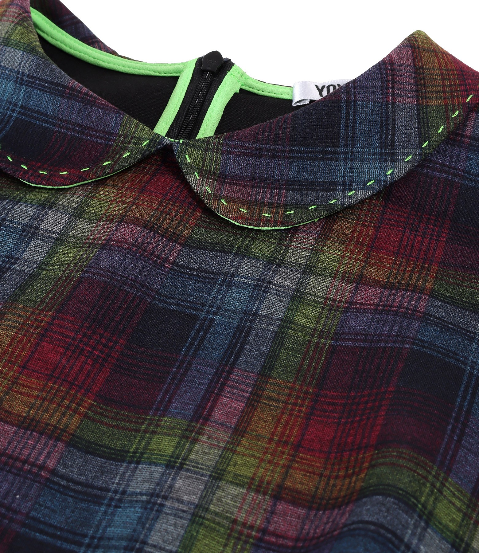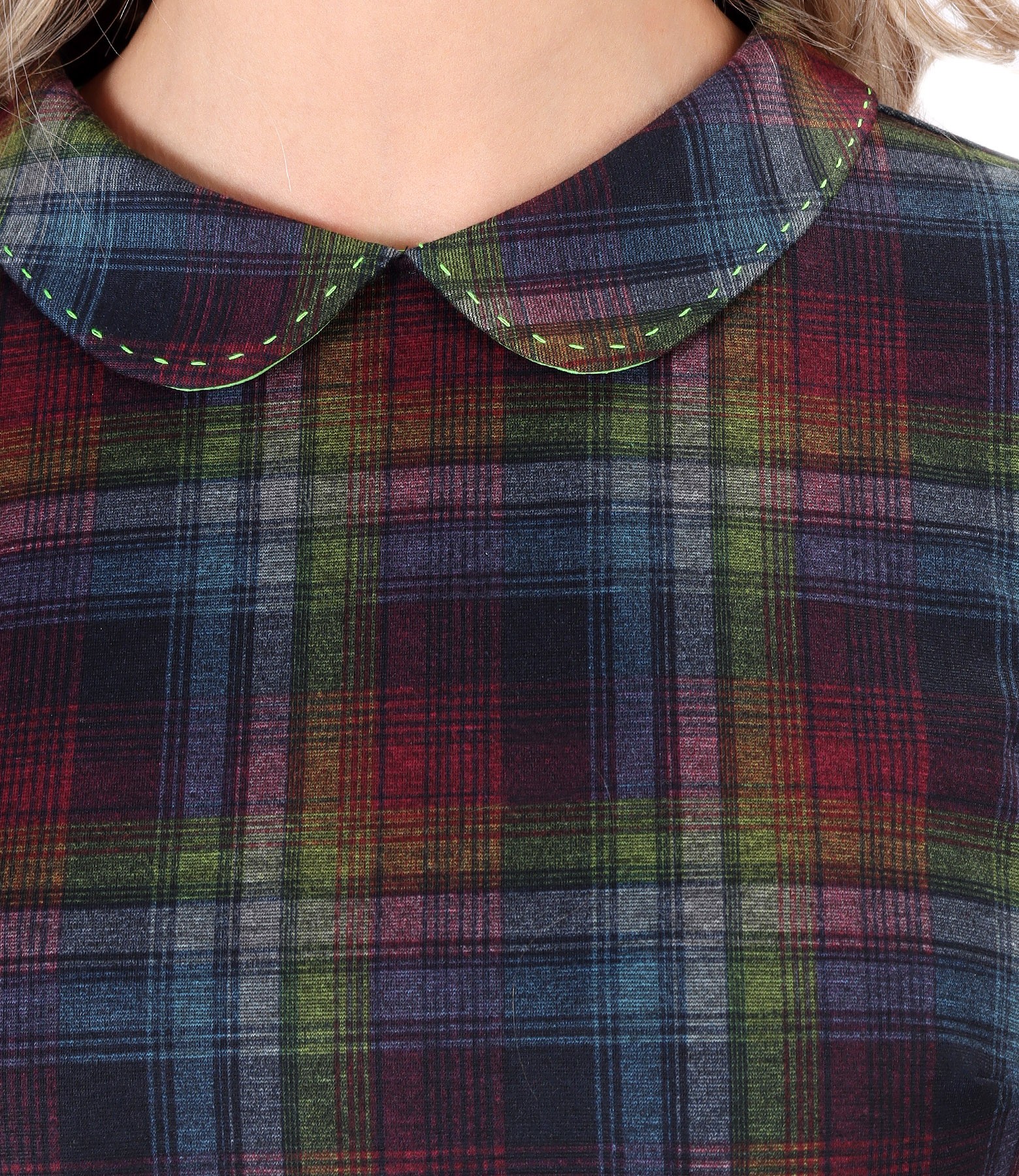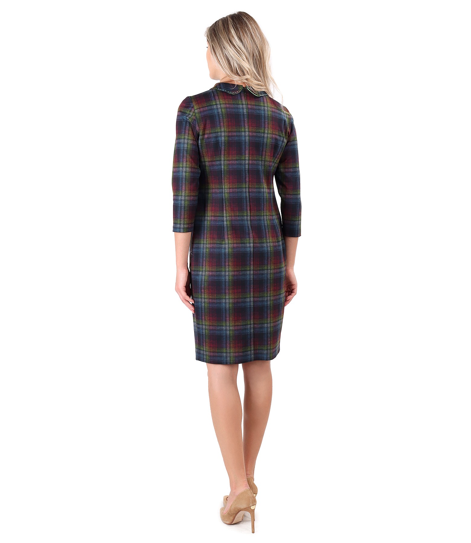 Dress made of thick elastic jersey with plaid and round collar