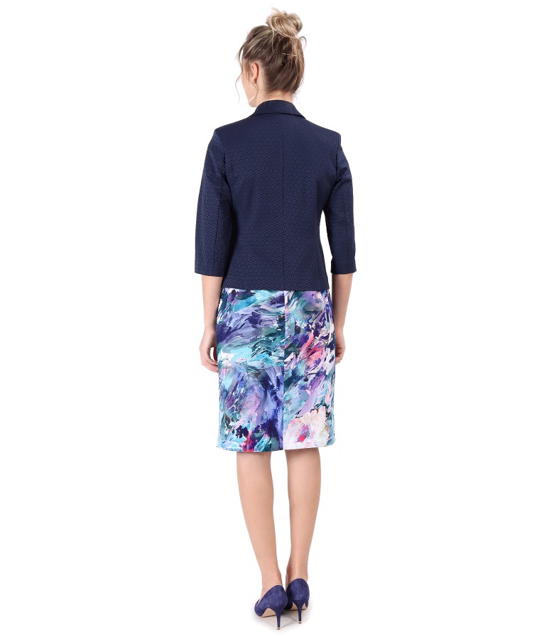 Casual dress,unlined,printed with floral motifs and round decolletage.