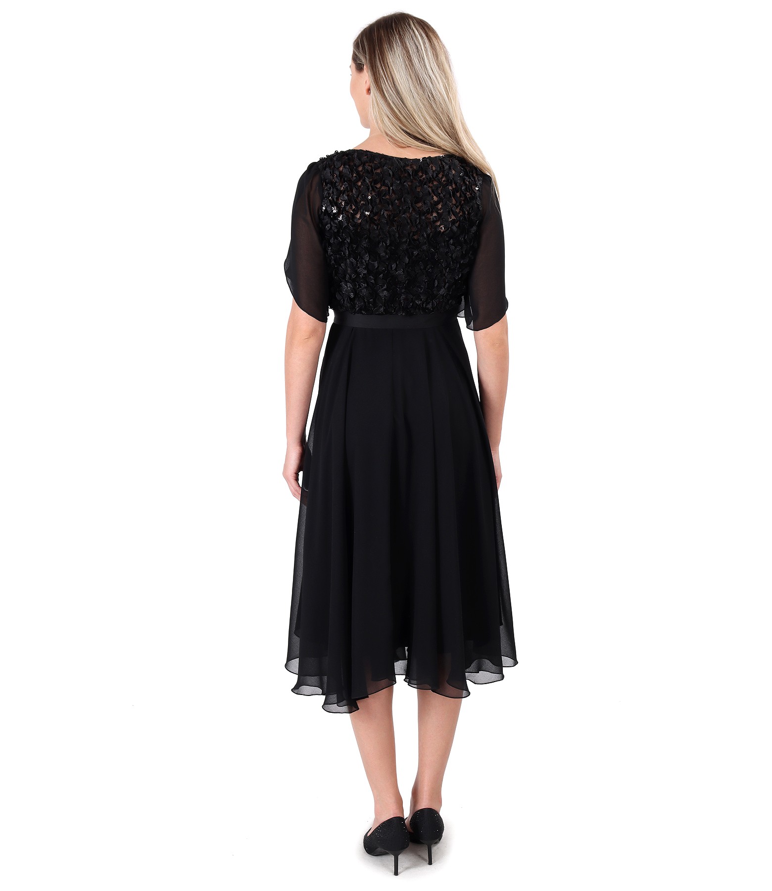 Dress with lace corset with flowers and sequins (Black), size