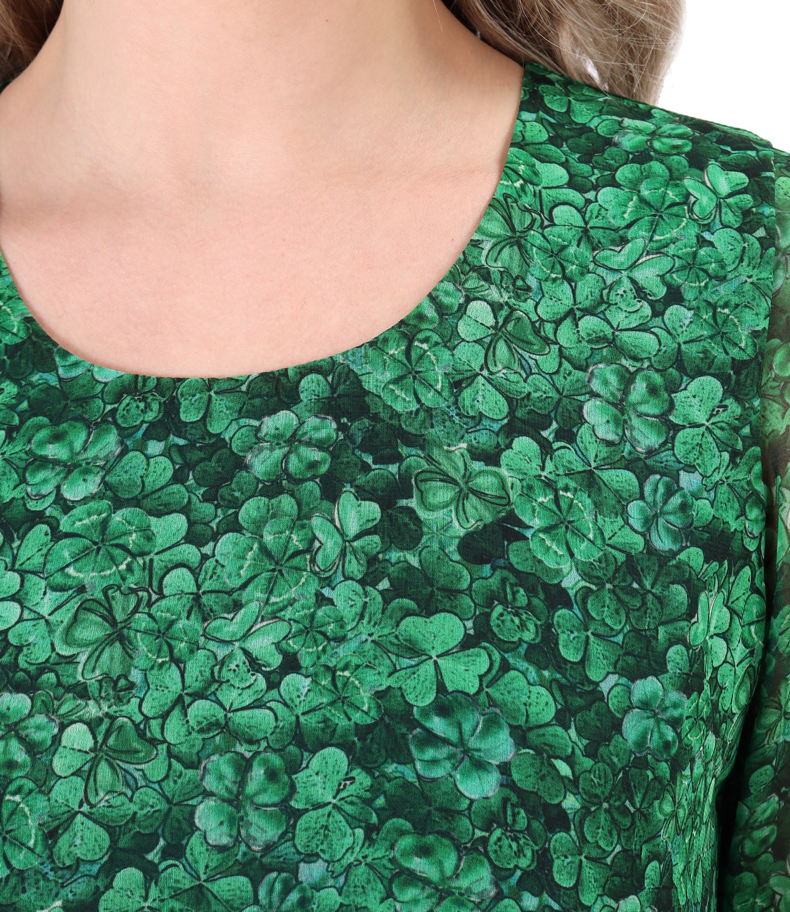 Dress with ruffles made of printed veil with floral motifs (Green), size