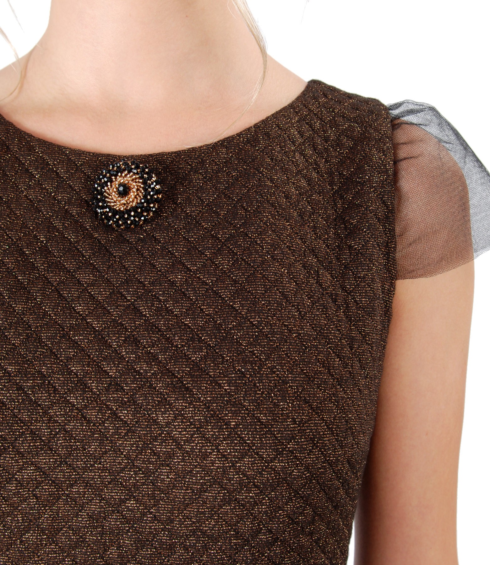 Elastic brocade dress with copper thread