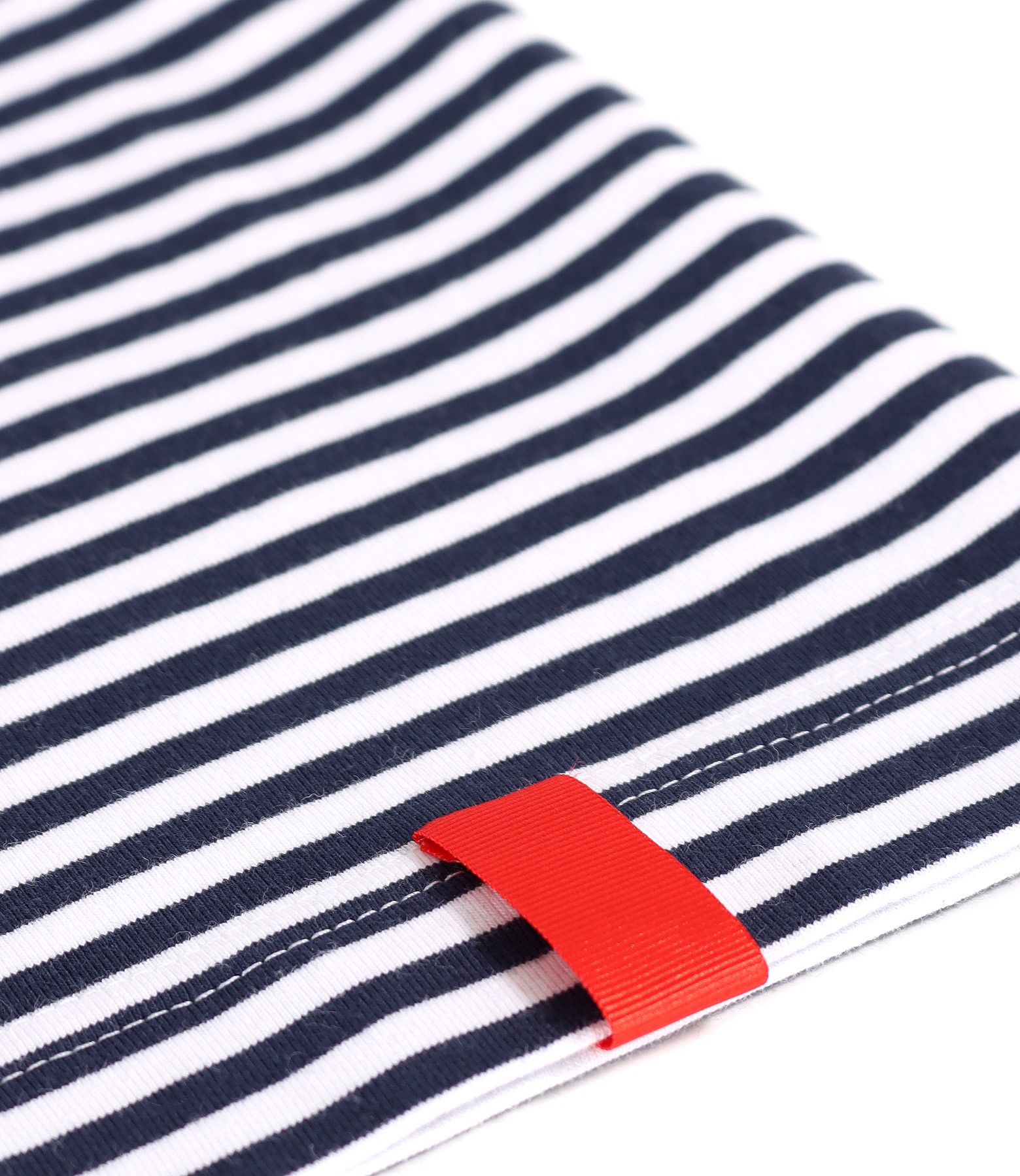 Elastic cotton blouse printed with stripes (Navy Blue), size