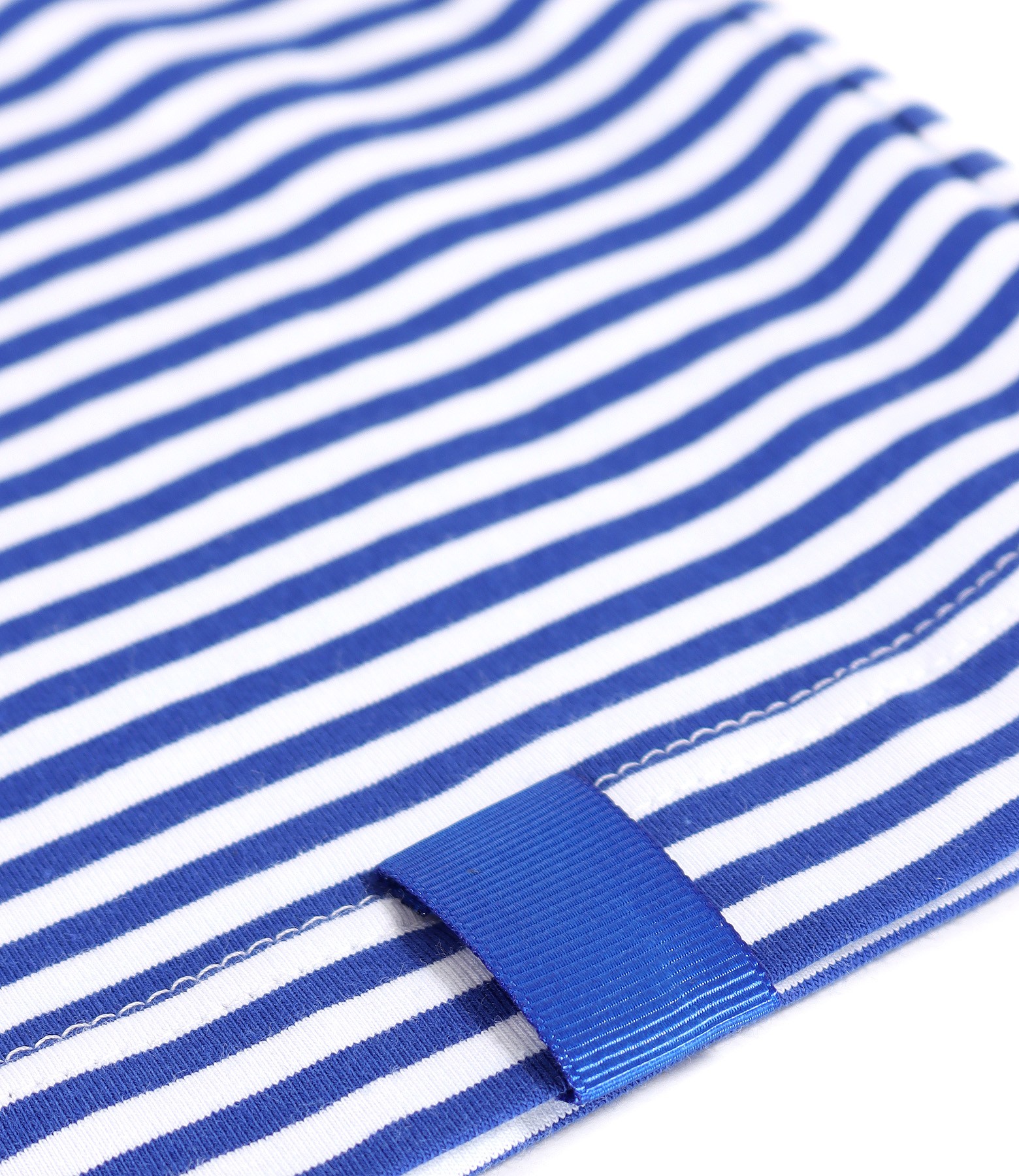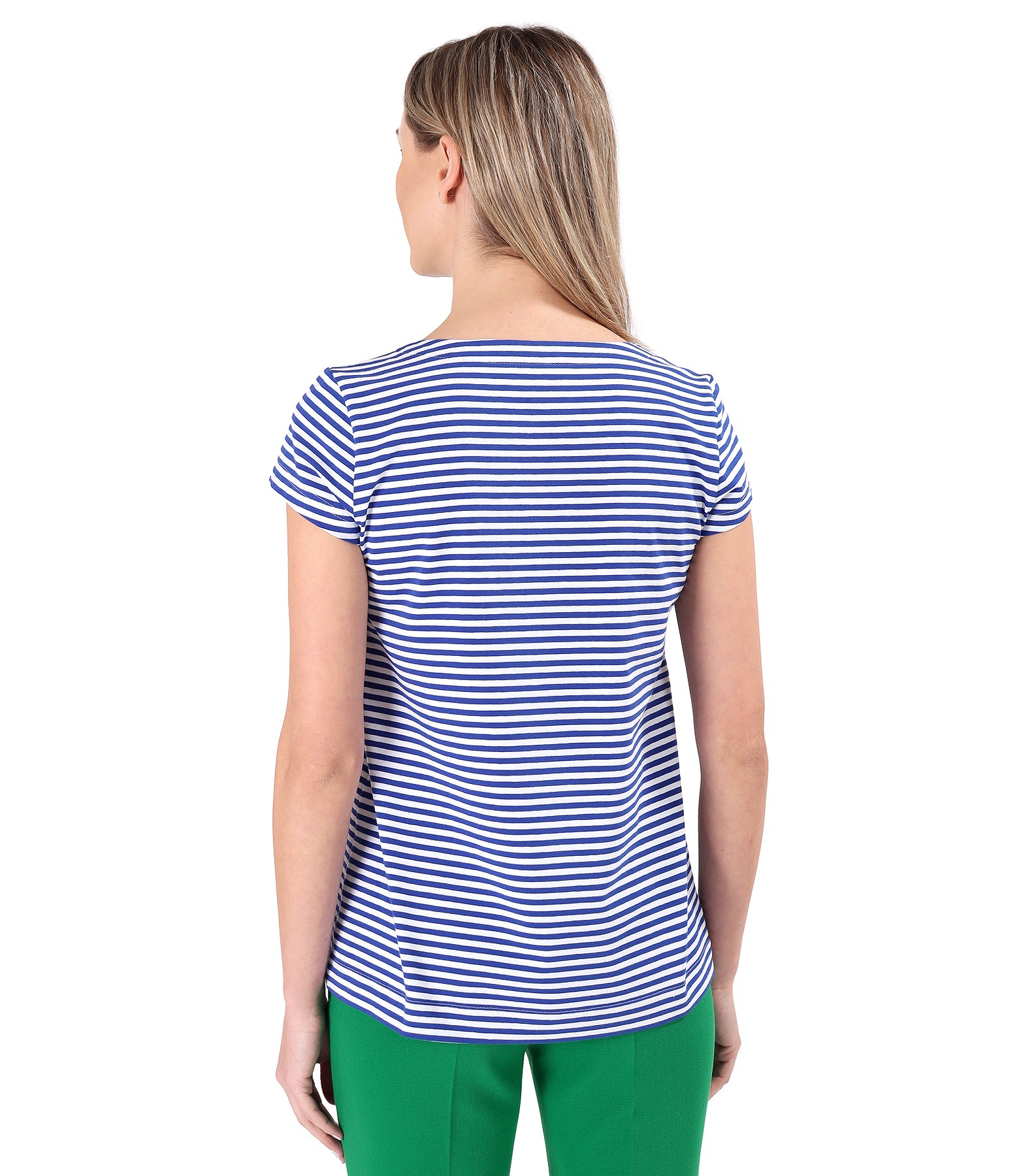 Elastic cotton blouse printed with stripes, with a round neckline and short sleeves.