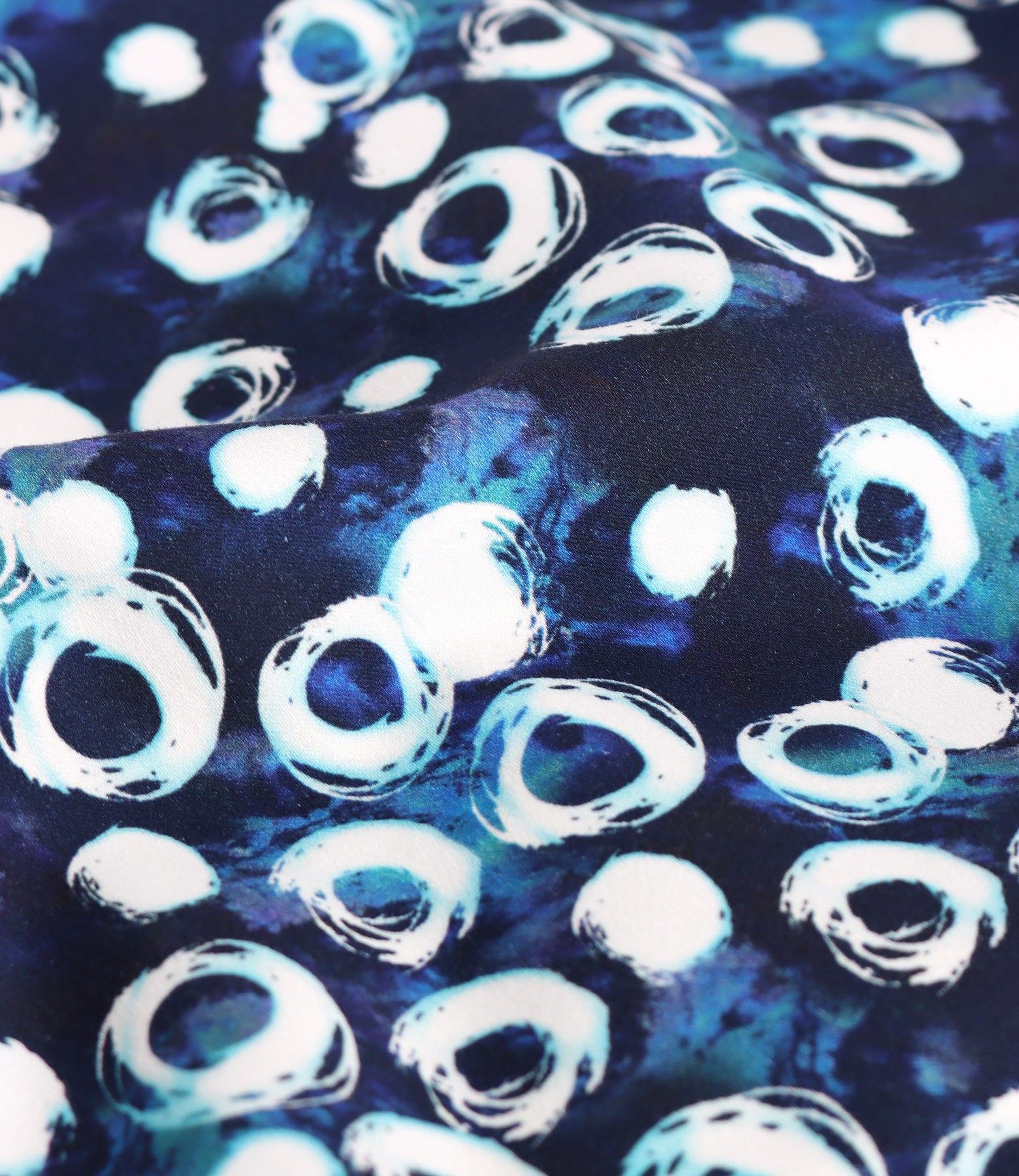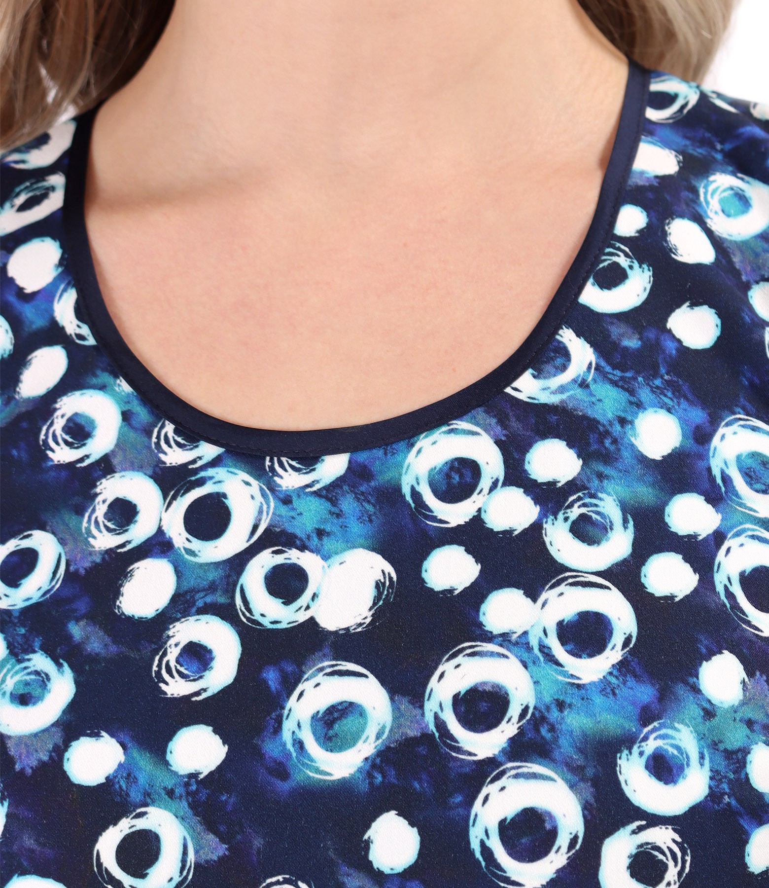 Elastic cotton dress printed with geometric motifs (Navy Blue), size