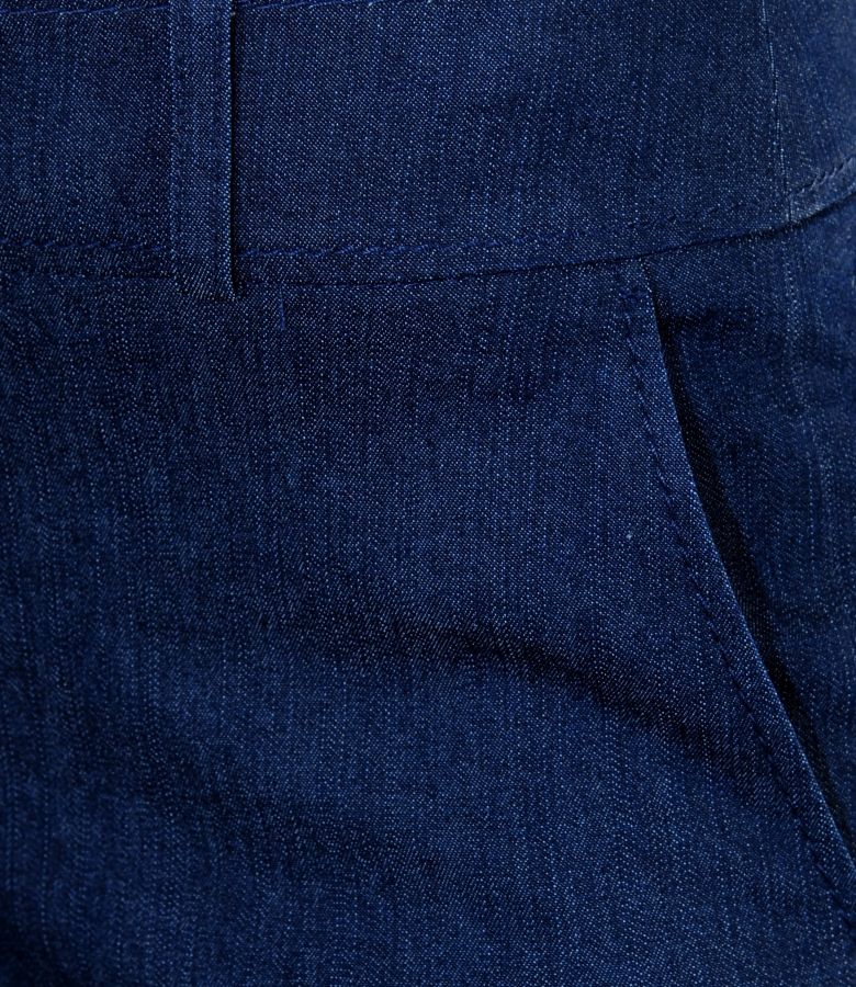 Light, dark blue stretch denim trousers, with straight line. Wide cord with waist straps and two oblique pockets. Closes with 2 hooks and normal zip on front.