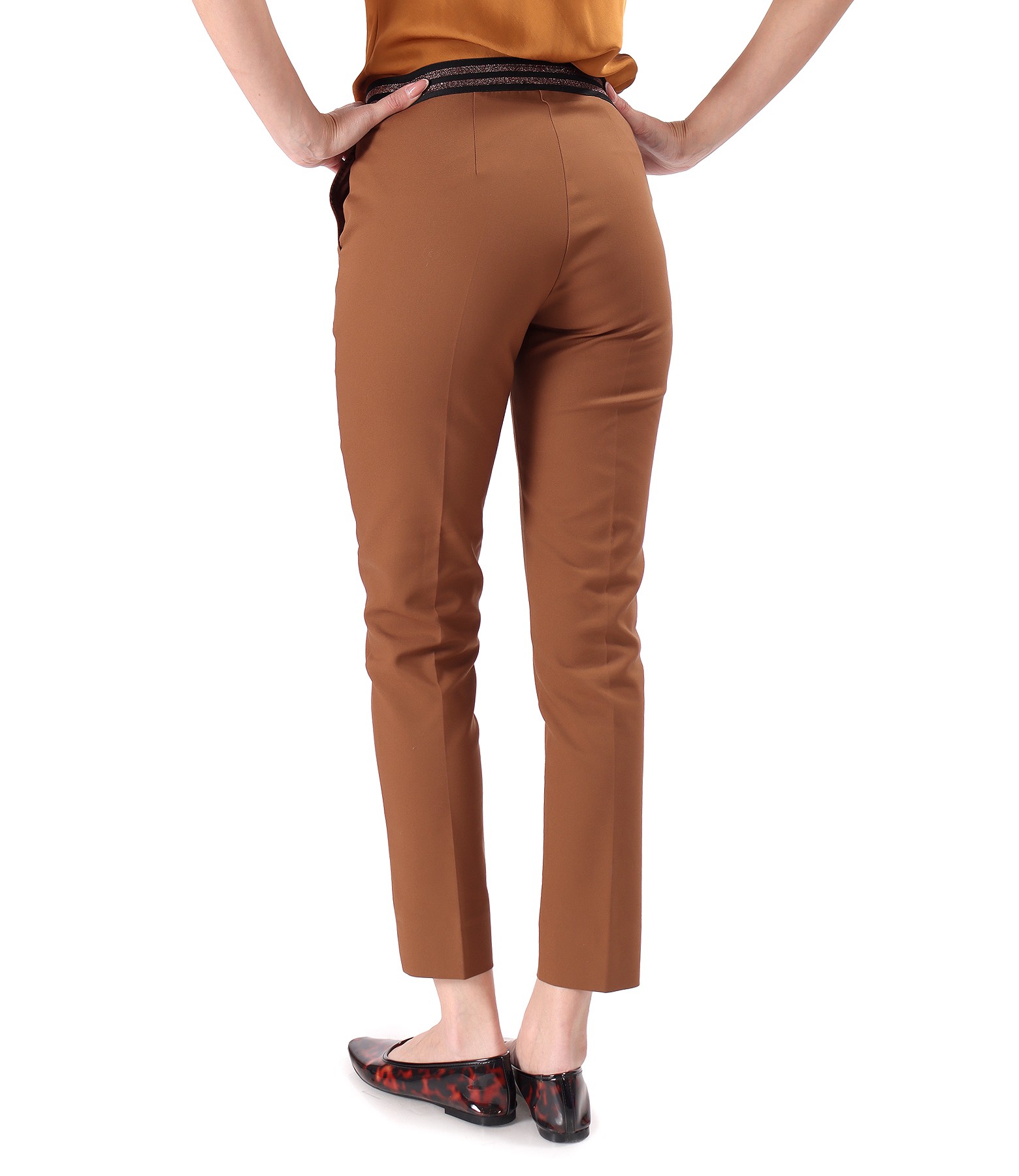 Elastic cotton pants with decorative elastic band (Brick Red), size