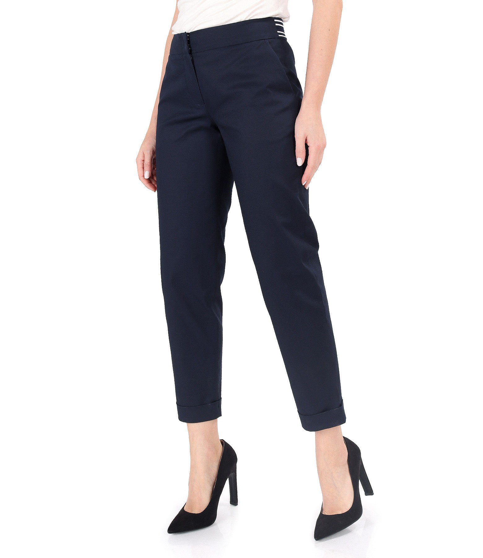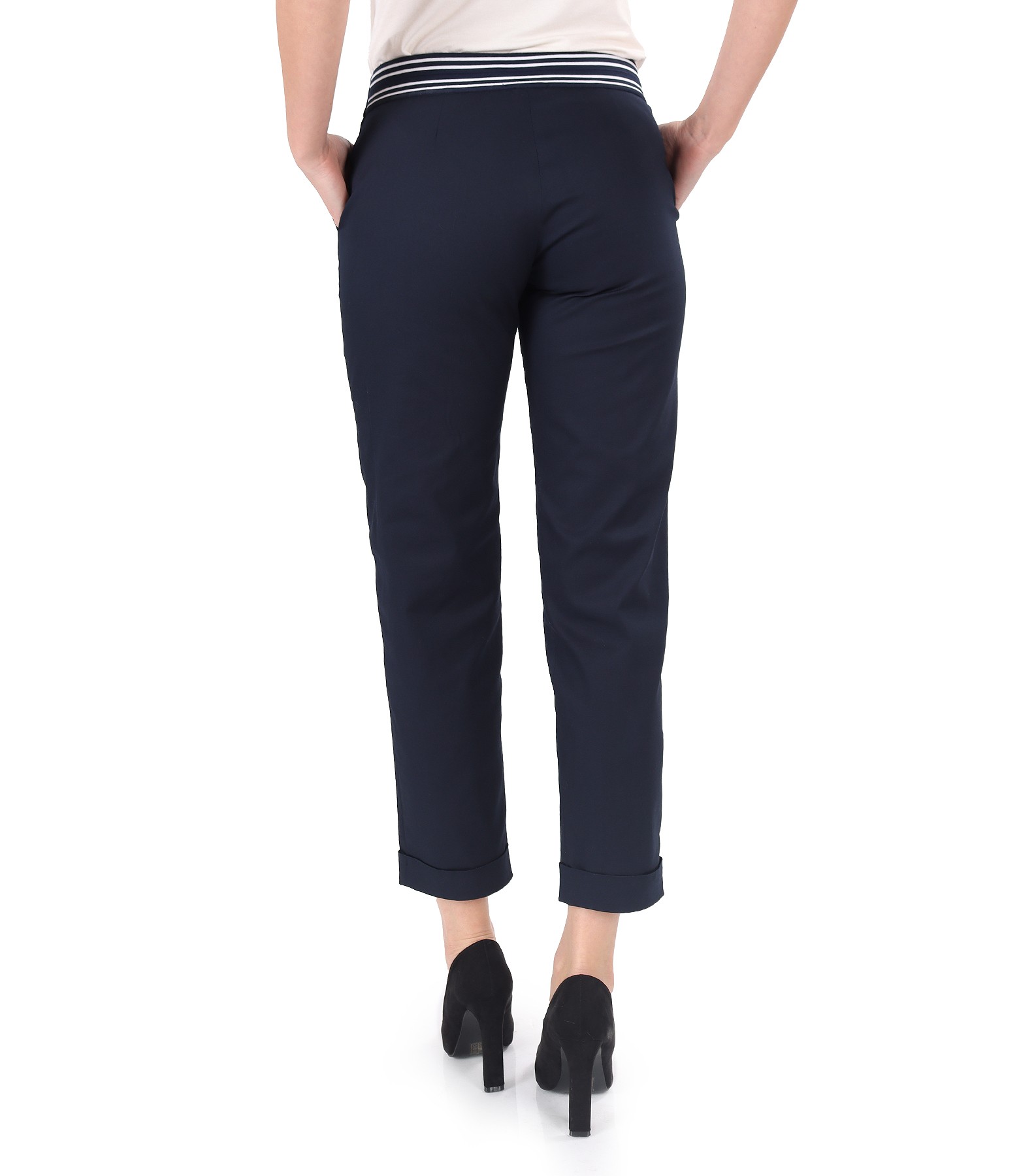 Elastic cotton pants with front pockets (Dark blue), size
