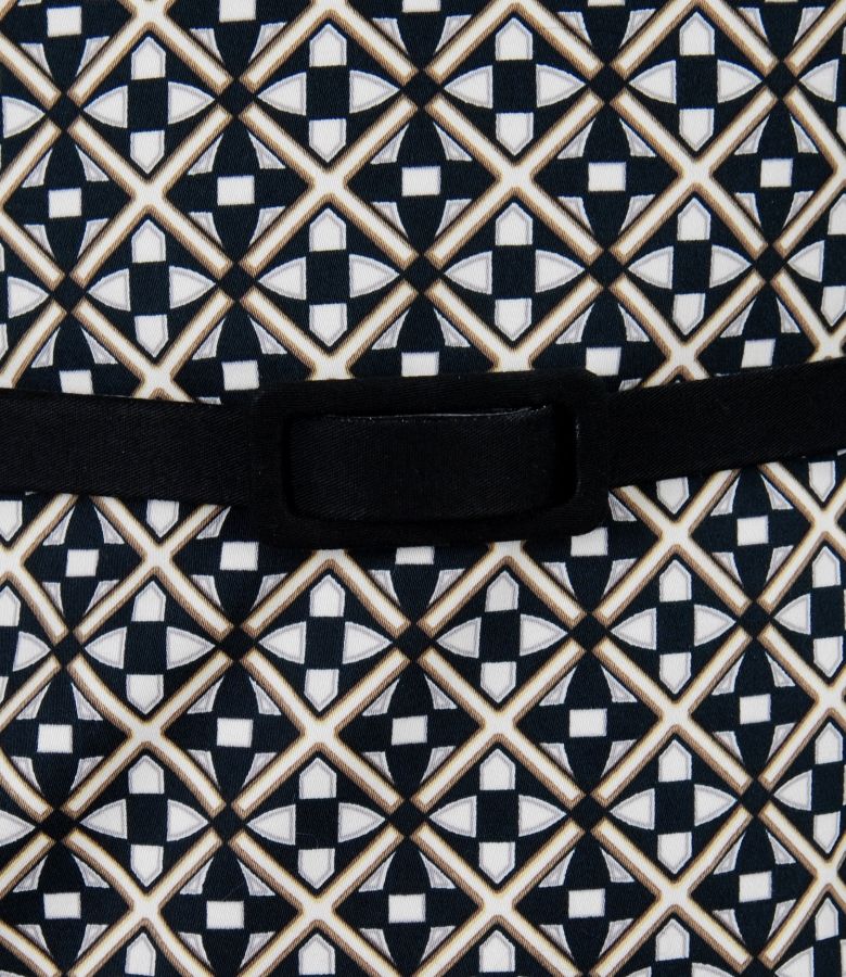 Elastic cotton dress, without lining, with graphic print and round neckline. Closes with middle-back concealed zipper and it tightens in waist with a detachable belt.