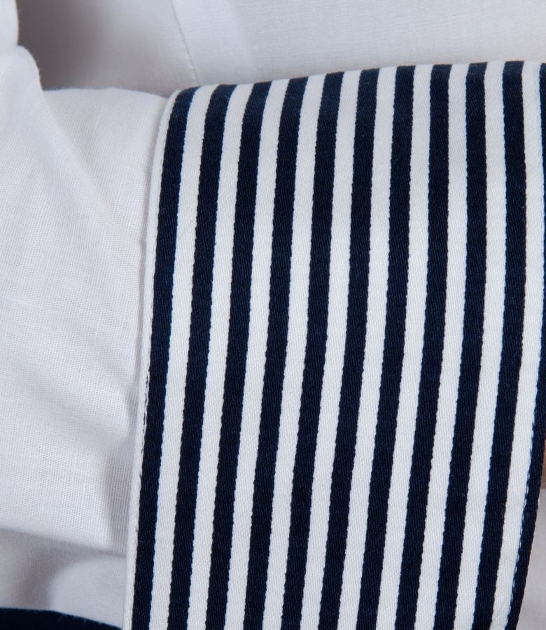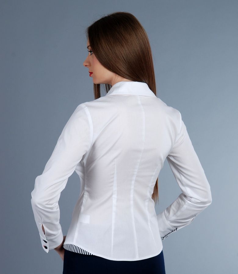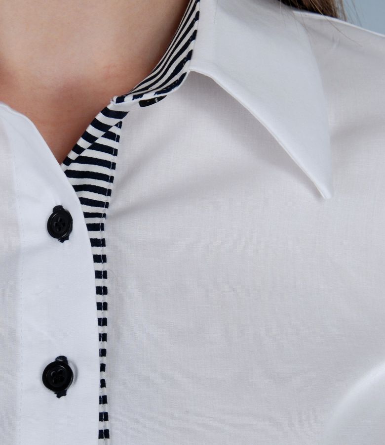 Elastic cotton shirt with trim (White-Dark blue), size
