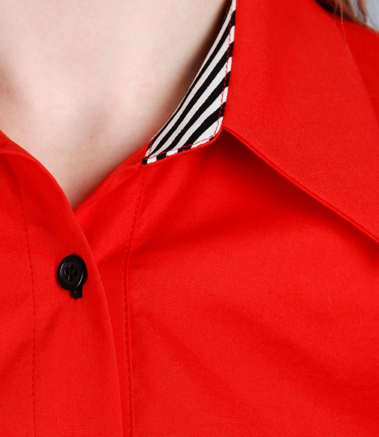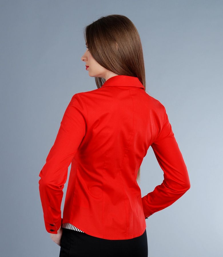 Button front elastic cotton fitted shirt, long sleeves with wristbands closed with 2 buttons each. Trim applied on the inside edge, sleeves and on sides.