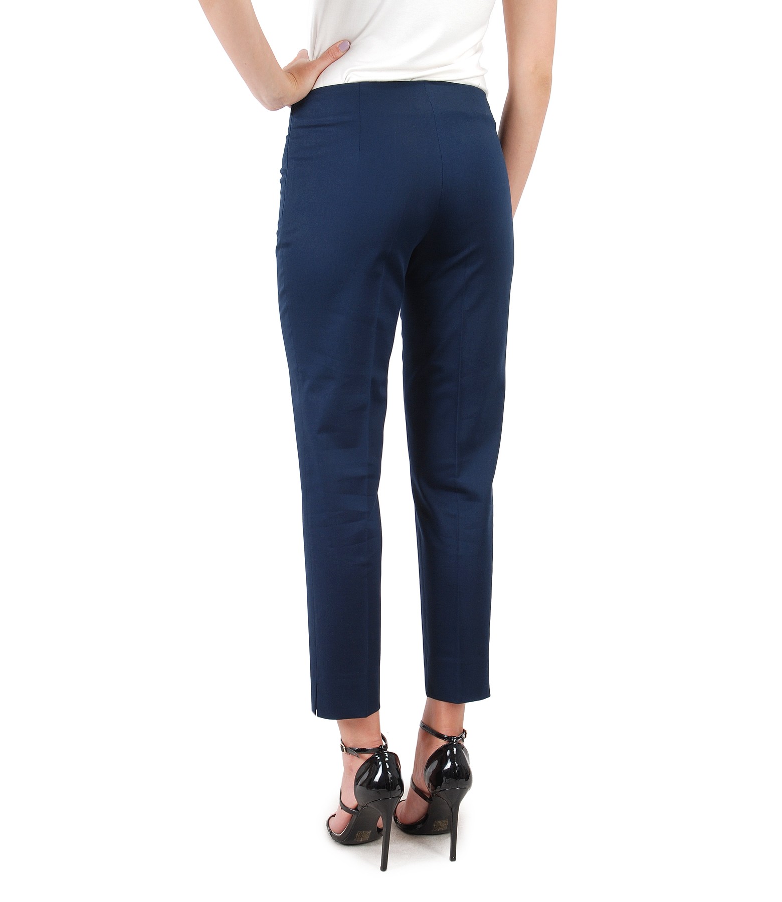 Elegant cotton pants, skinny and with side slits. Closes with hidden zipper on the left side.