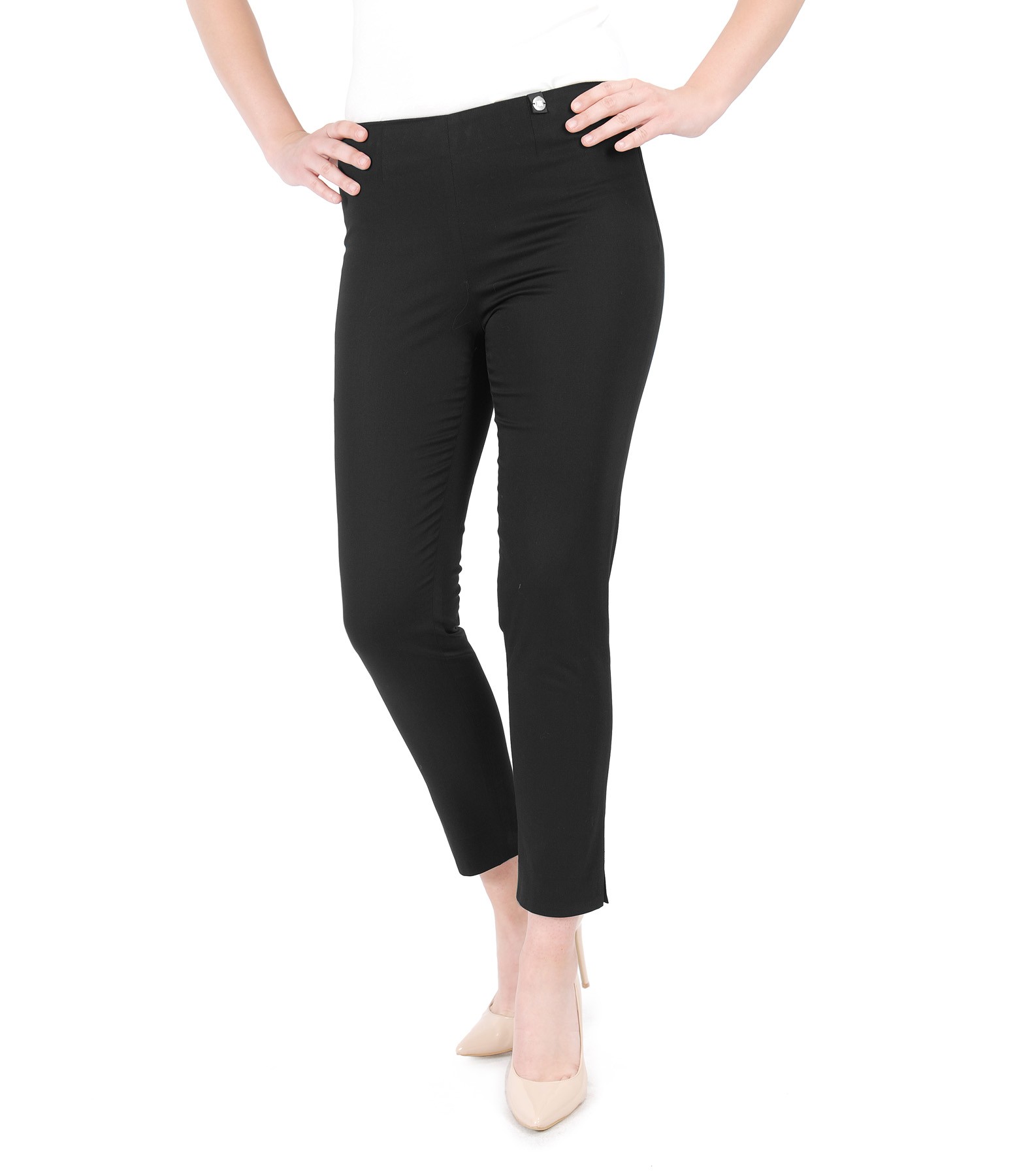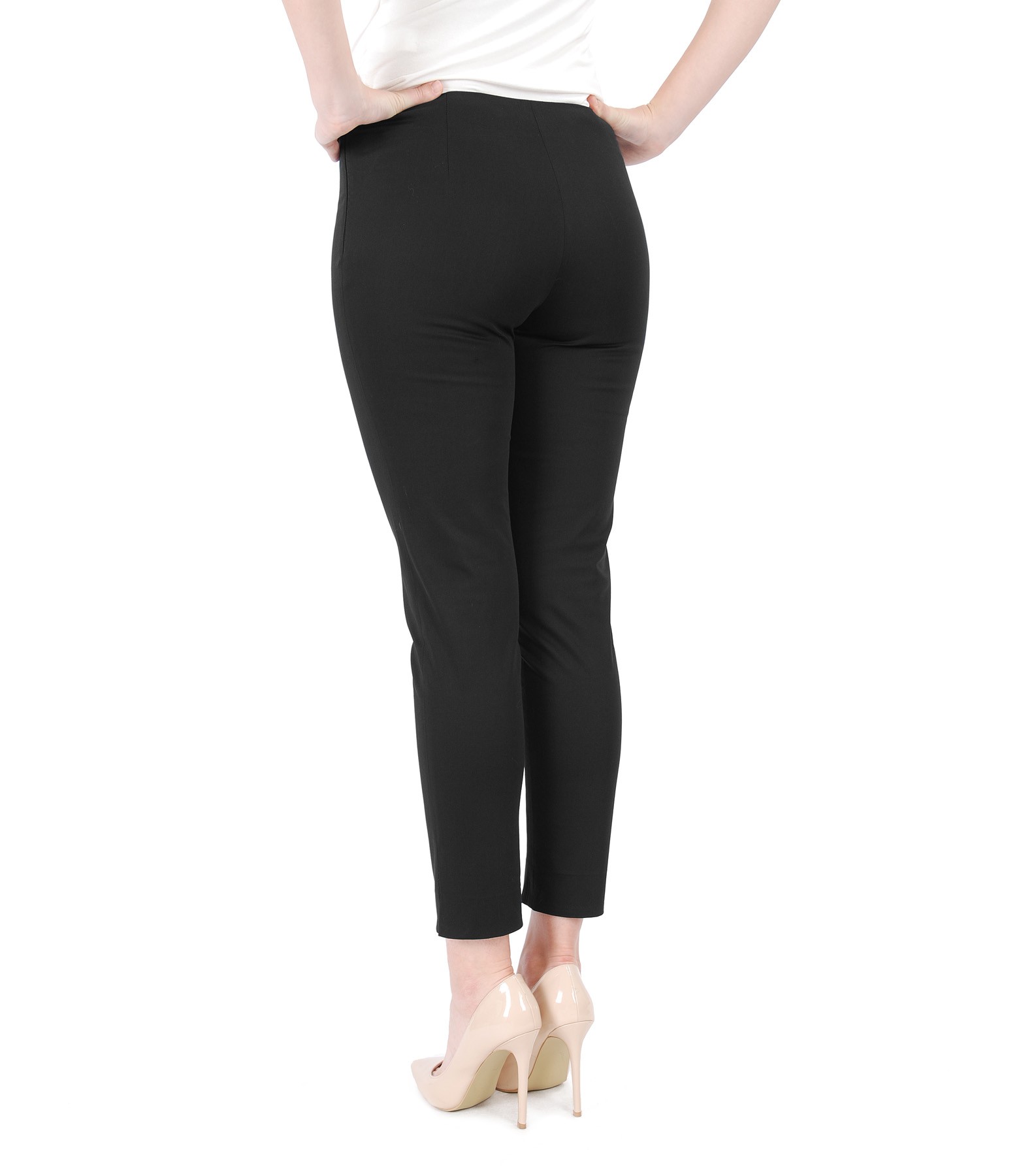 Elegant elastic cotton pants, skinny and with side slits. Closes with hidden zipper on the left side.
