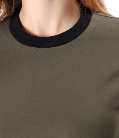 Elastic cotton dress, with side pockets, unlined, with long sleeves and round neckline with linings at the ends in elastic jersey.