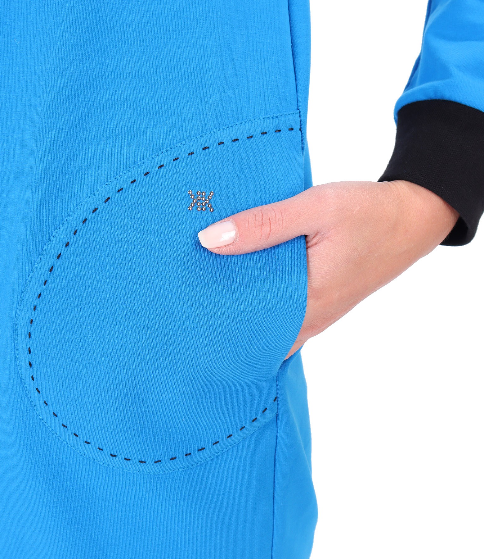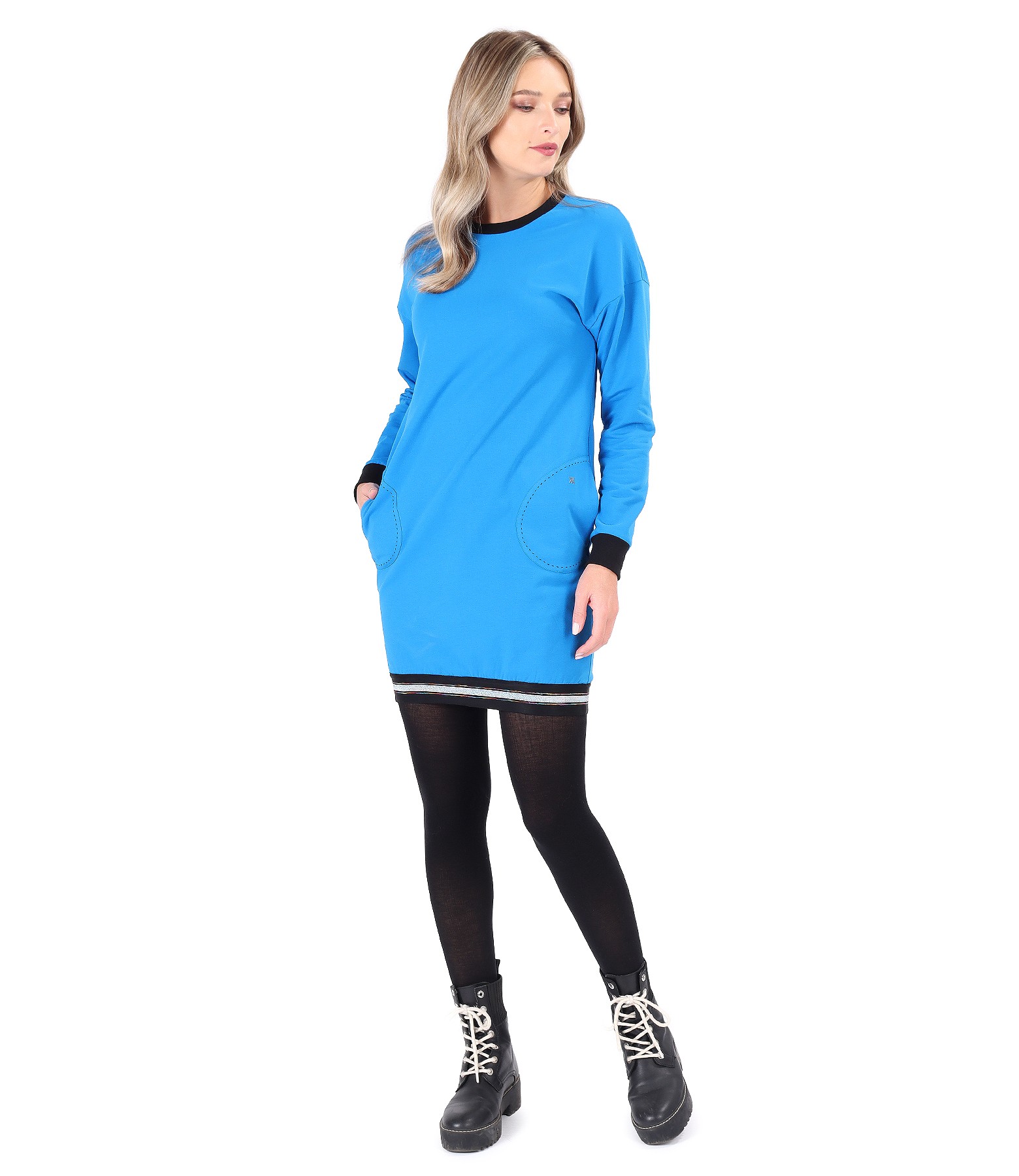Elastic cotton sweatshirt dress with front pocket (Riyal blue), size