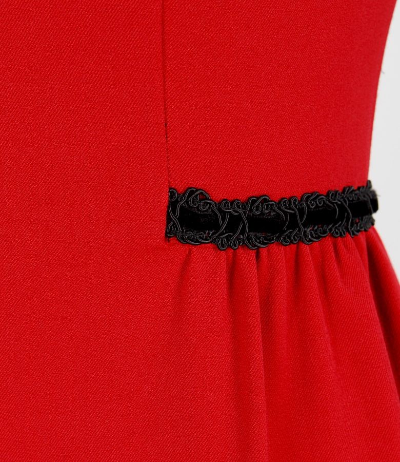 Elastic fabric dress with folds and velvet trim (Raspberry Red), size