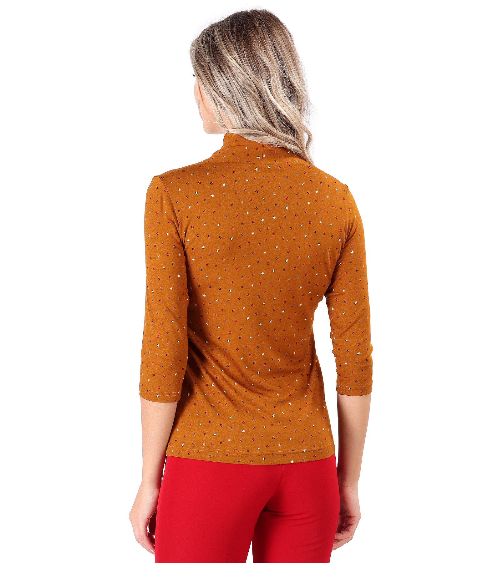 Elastic jersey blouse printed with dots (Brick red), size