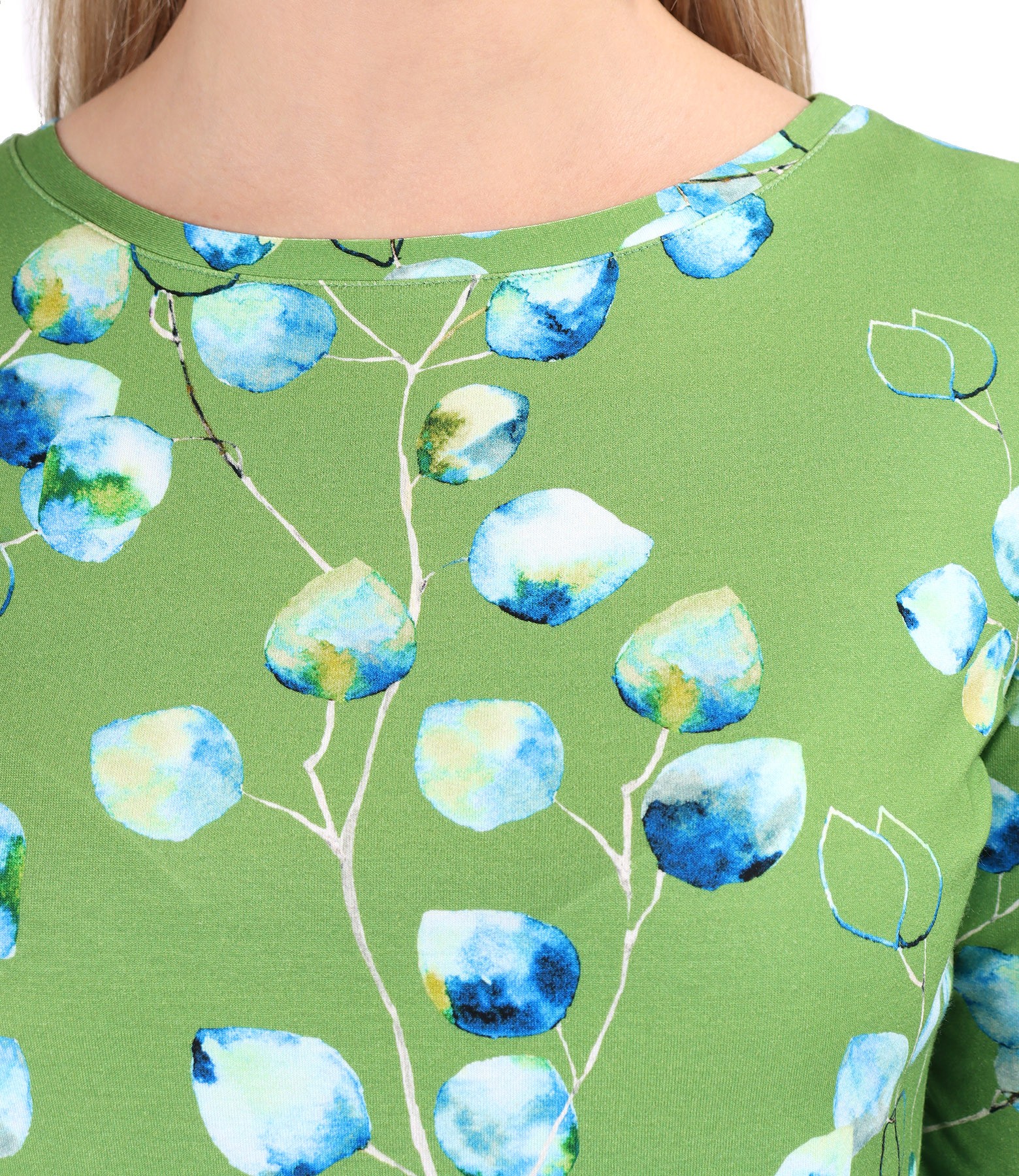Elastic jersey blouse printed with floral motifs (Green), size