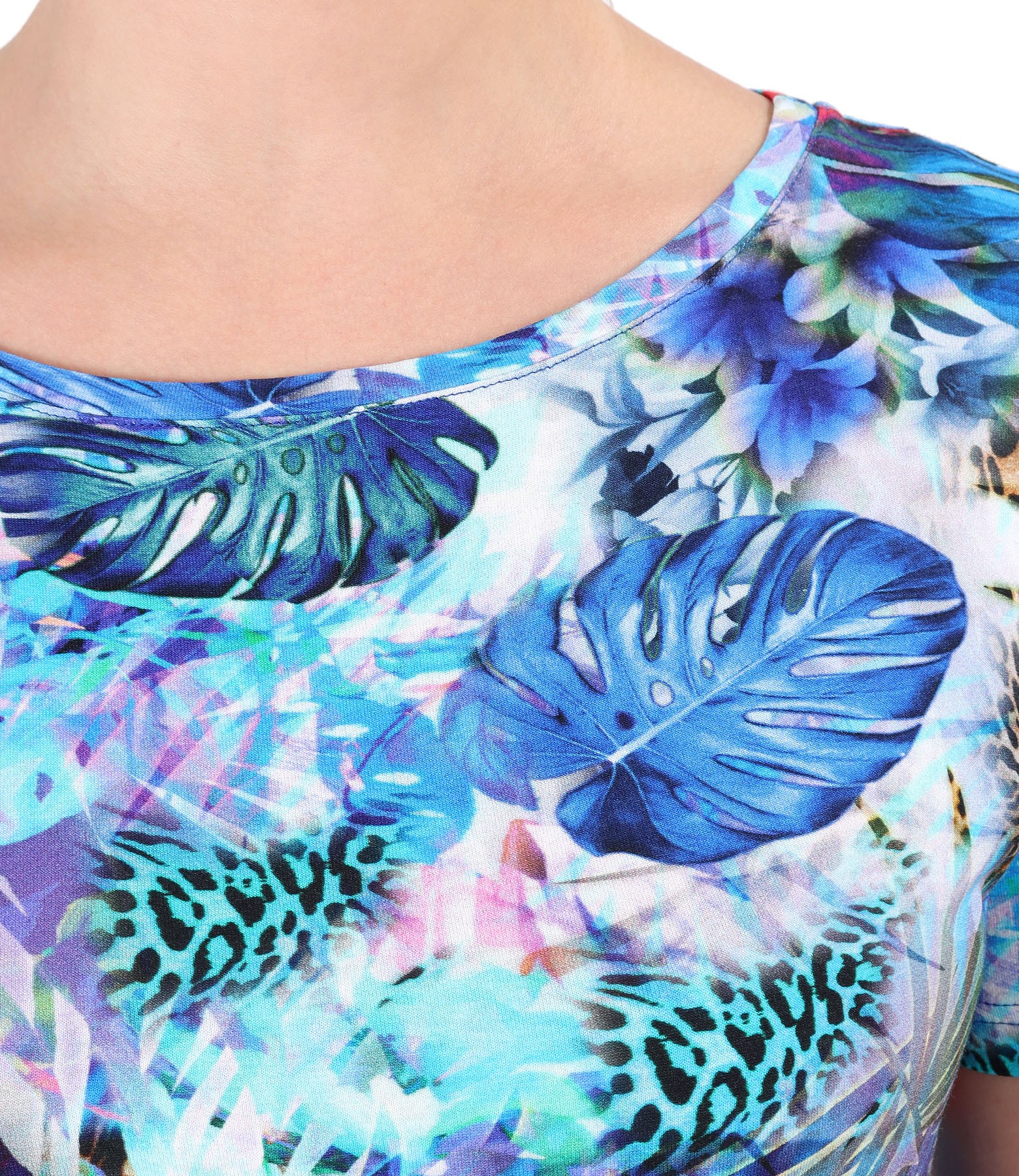 Elastic jersey blouse printed with floral motifs (Blue), size