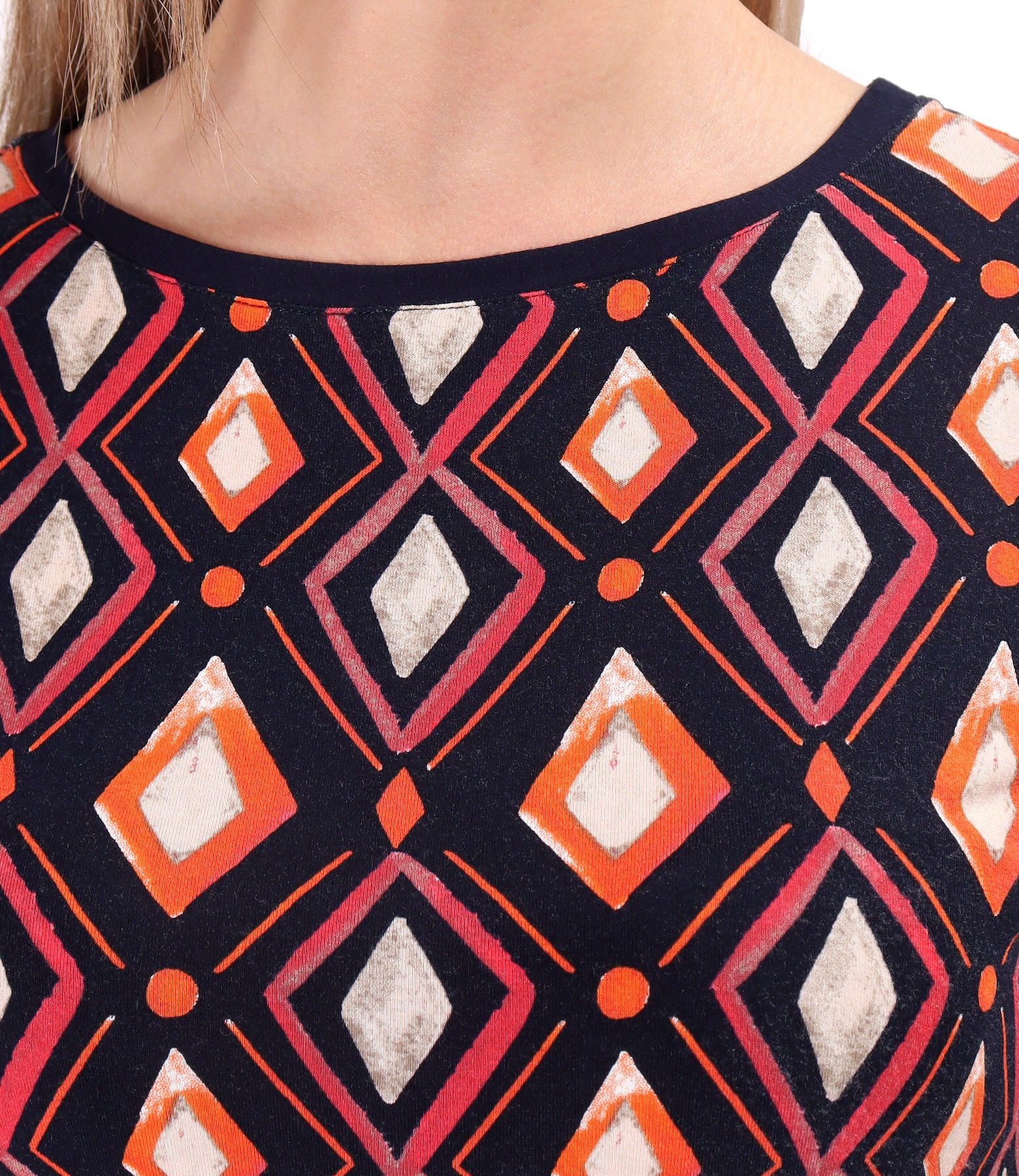 Elastic jersey blouse printed with geometric motifs (Dark Blue), size