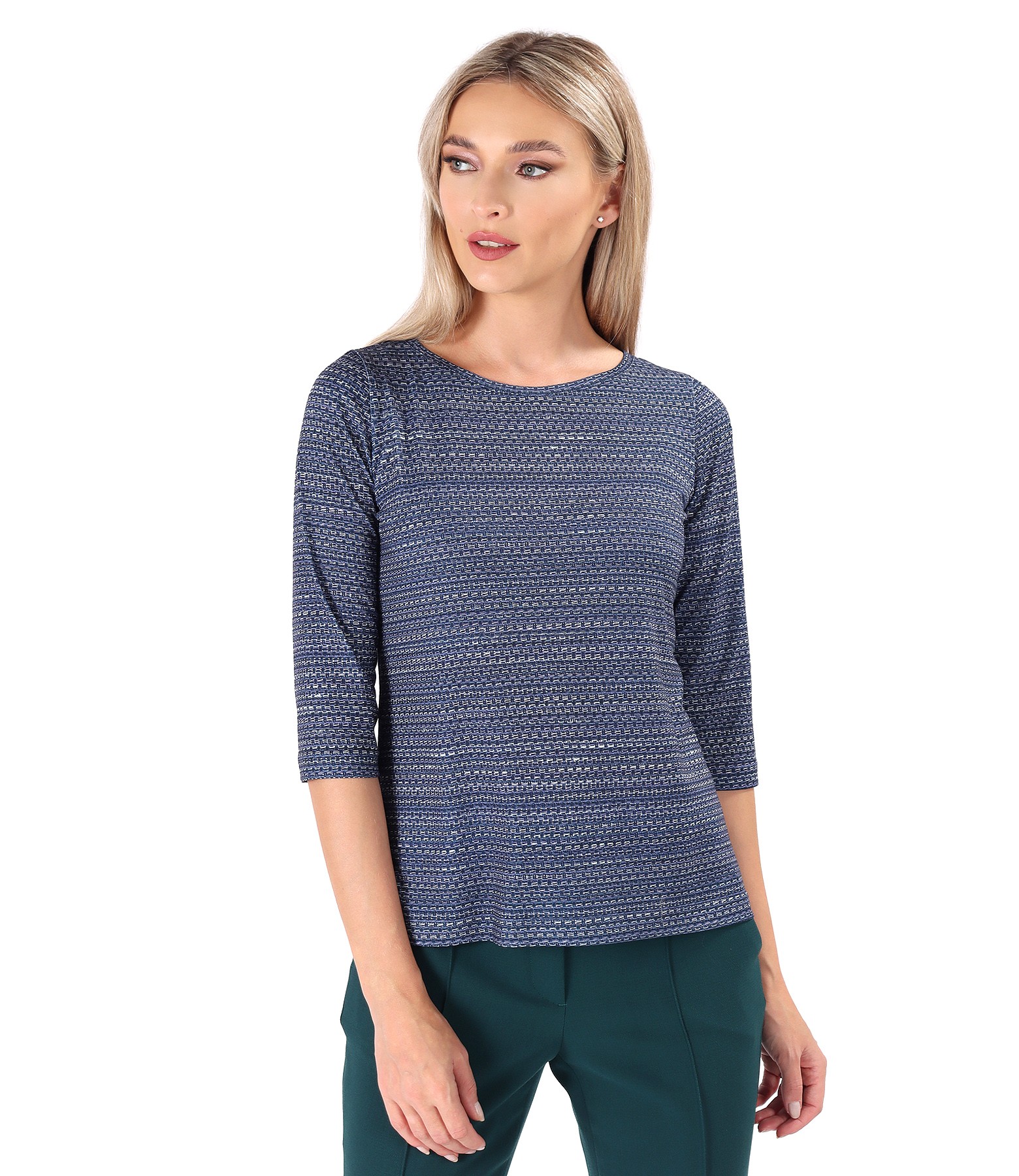 Elastic jersey blouse, printed with geometric motifs, with a round neckline and 3/4 sleeves.