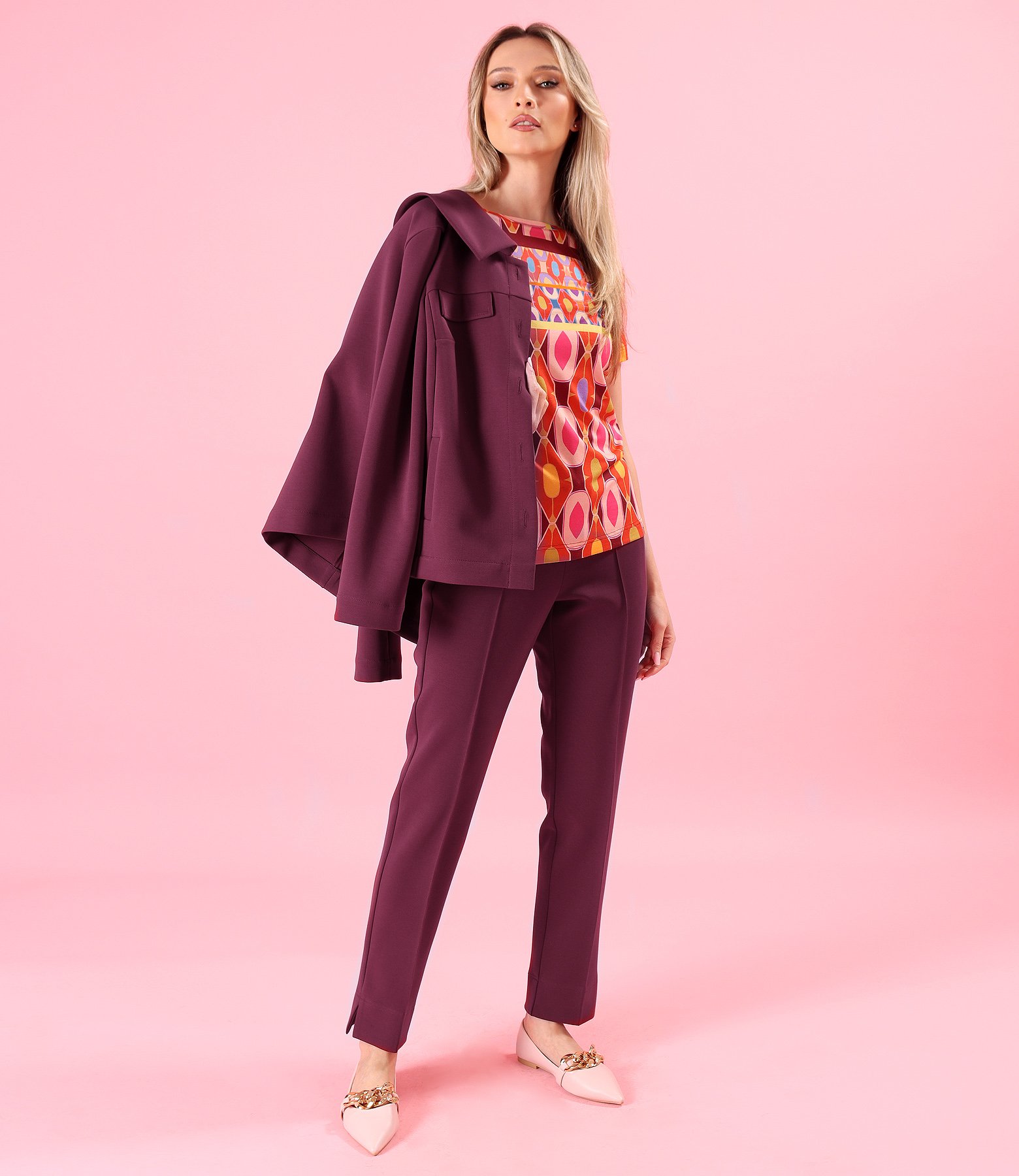 Elastic jersey blouse printed with geometric motifs (red), size