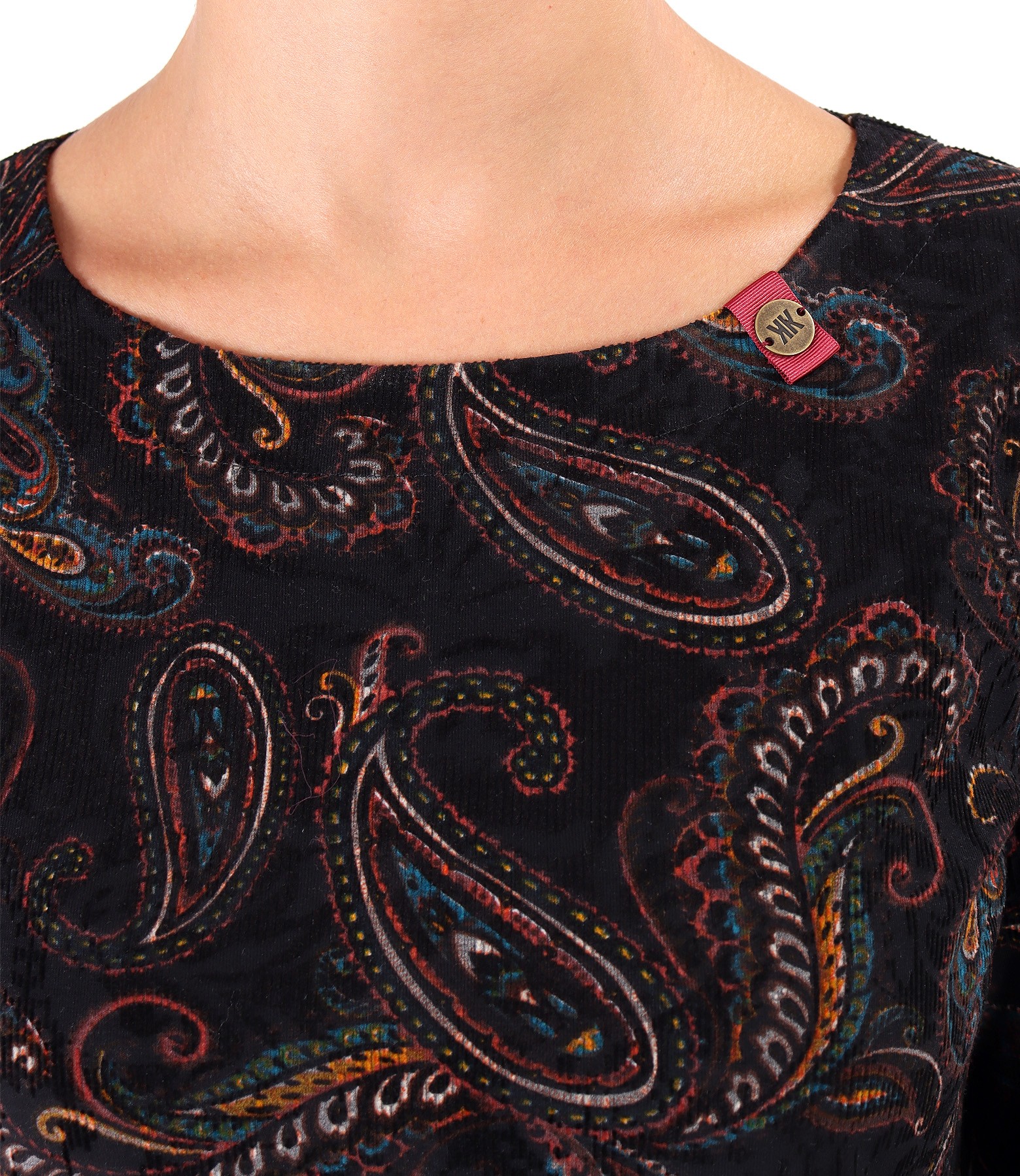 Elastic jersey blouse printed with paisley motifs (Black), size