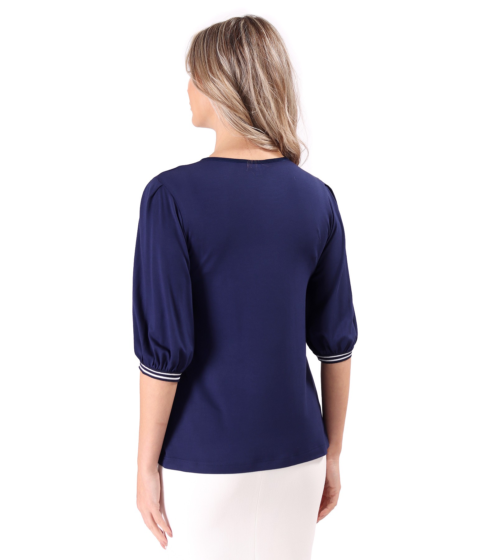 Elastic jersey blouse with 3/4 sleeves (Navy Blue), size
