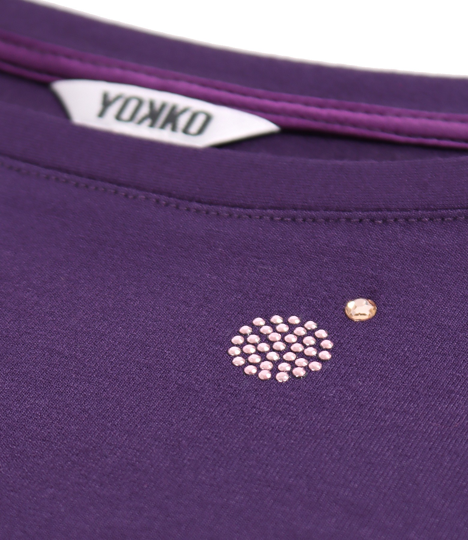 Elastic jersey blouse with 3/4 sleeves and round neckline with crystals.