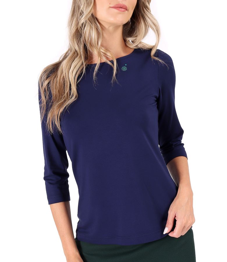 Elastic jersey blouse with 3/4 sleeves (Navy Blue), size