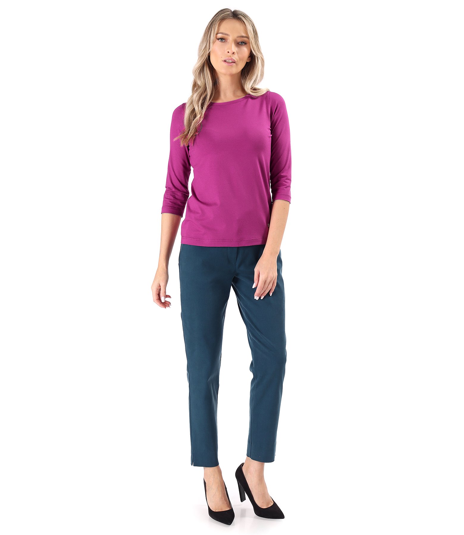 Elastic jersey blouse with 3/4 sleeves (Purple), size