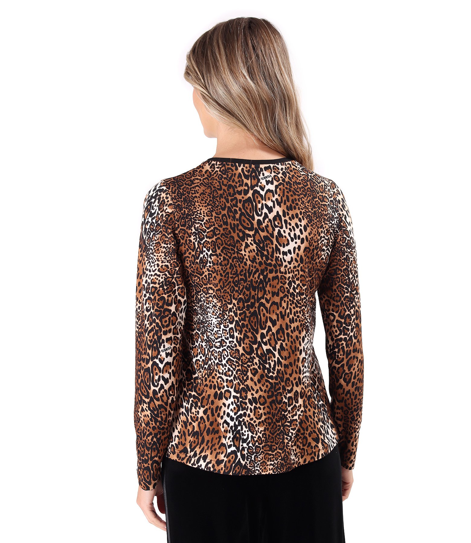 Elastic jersey blouse with animal print, with long sleeves and a round neckline. The print position varies per product.