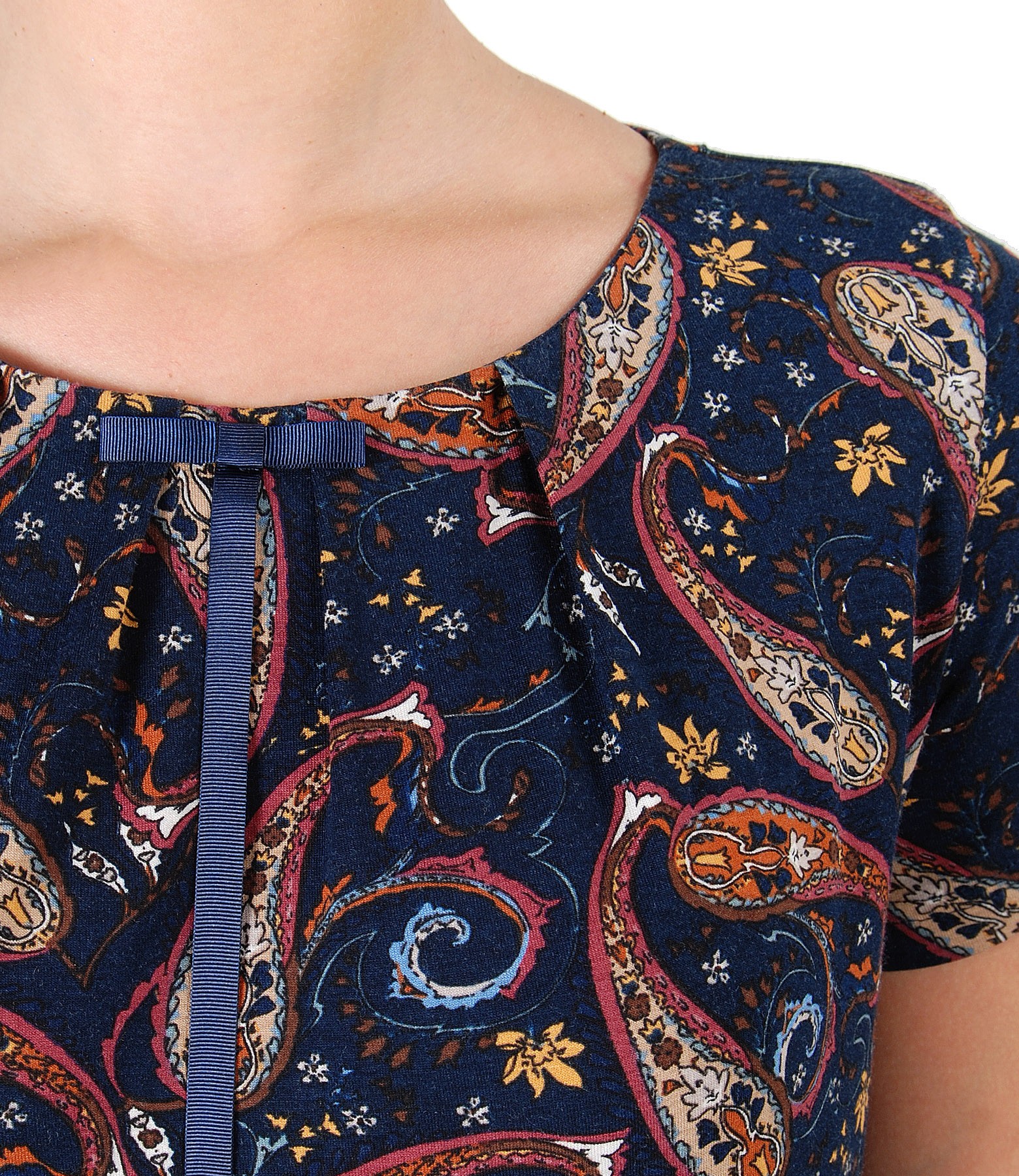 Elastic jersey blouse with bow on decolletage (Dark blue), size