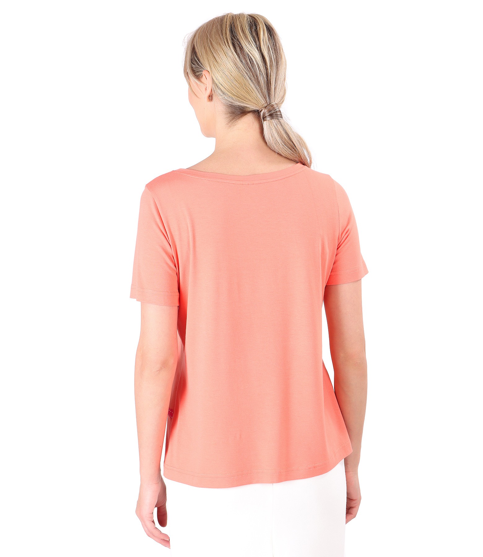 Elastic jersey blouse with bow rips (Orange), size