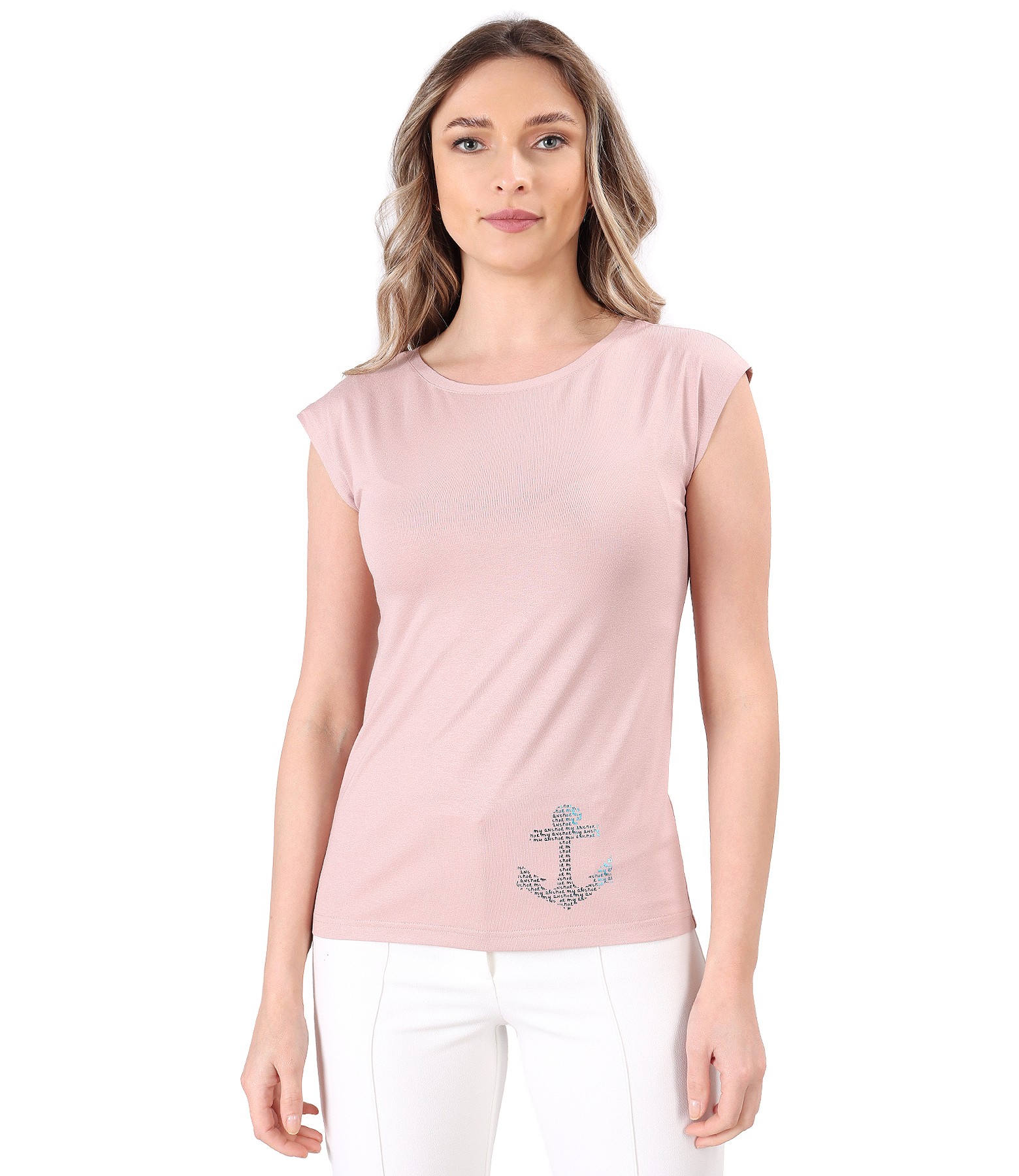 Elastic jersey blouse with decorative anchor (Dusty pink), size