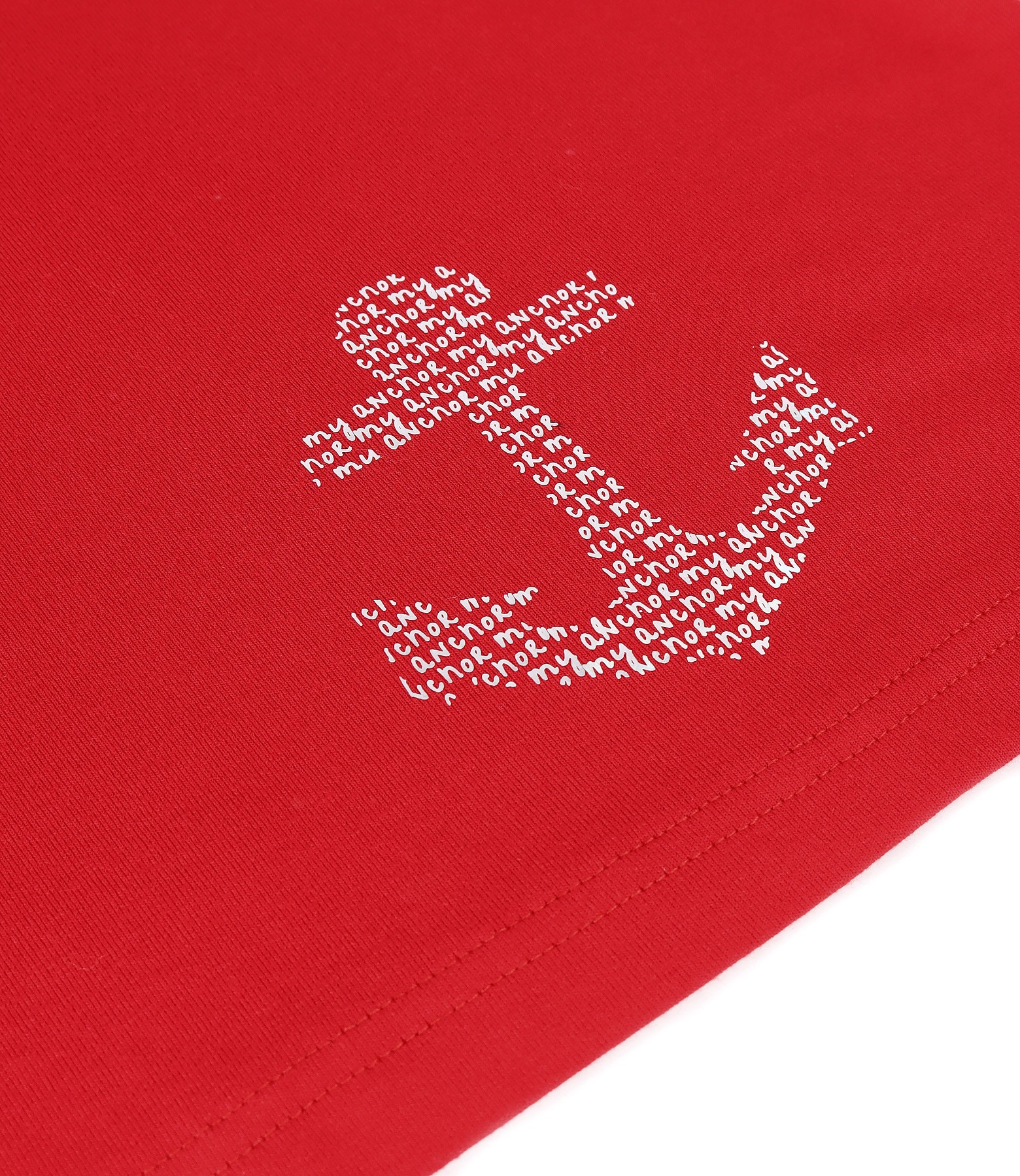 Elastic jersey blouse, with decorative anchor at the bottom, with boat neckline and dropped shoulders.