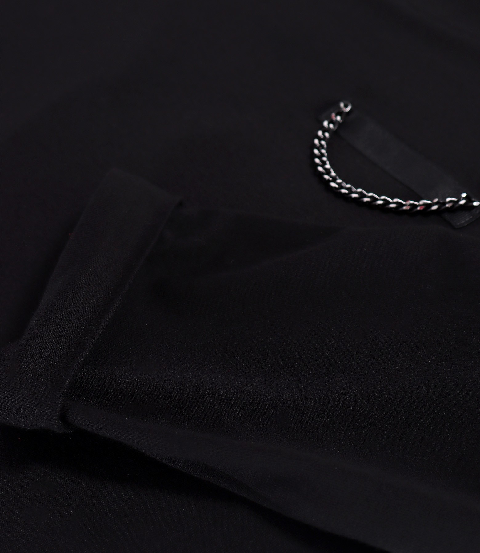 Elastic jersey blouse with decorative chain on the front (Black), size