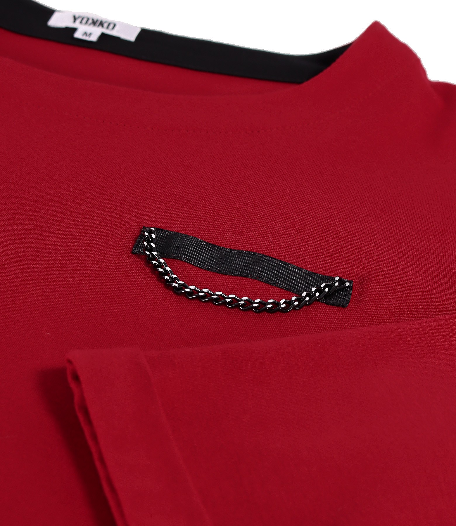 Elastic jersey blouse with decorative chain on the front (Red), size