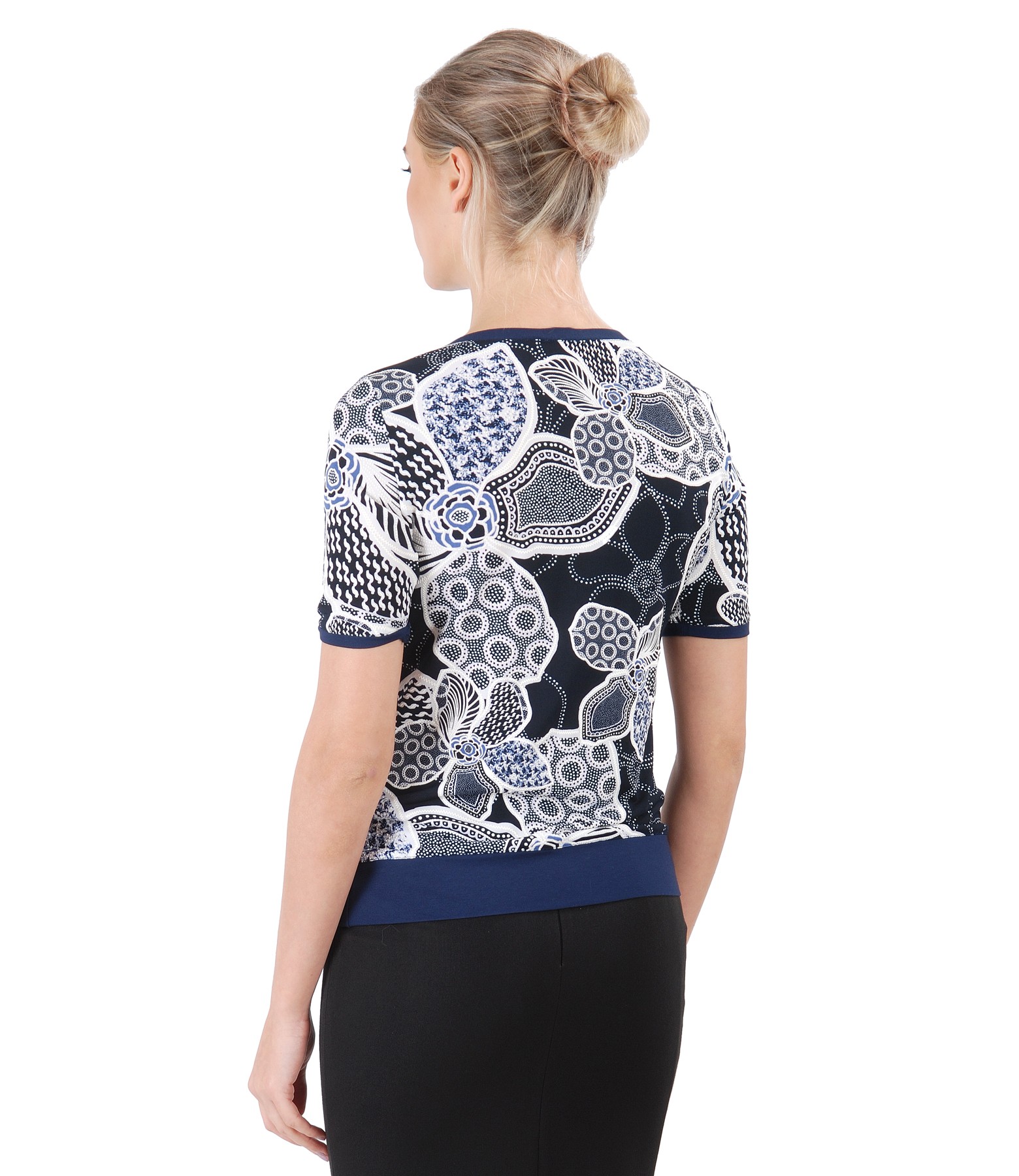 Elastic jersey blouse with embossed print, with short sleeves and trim.