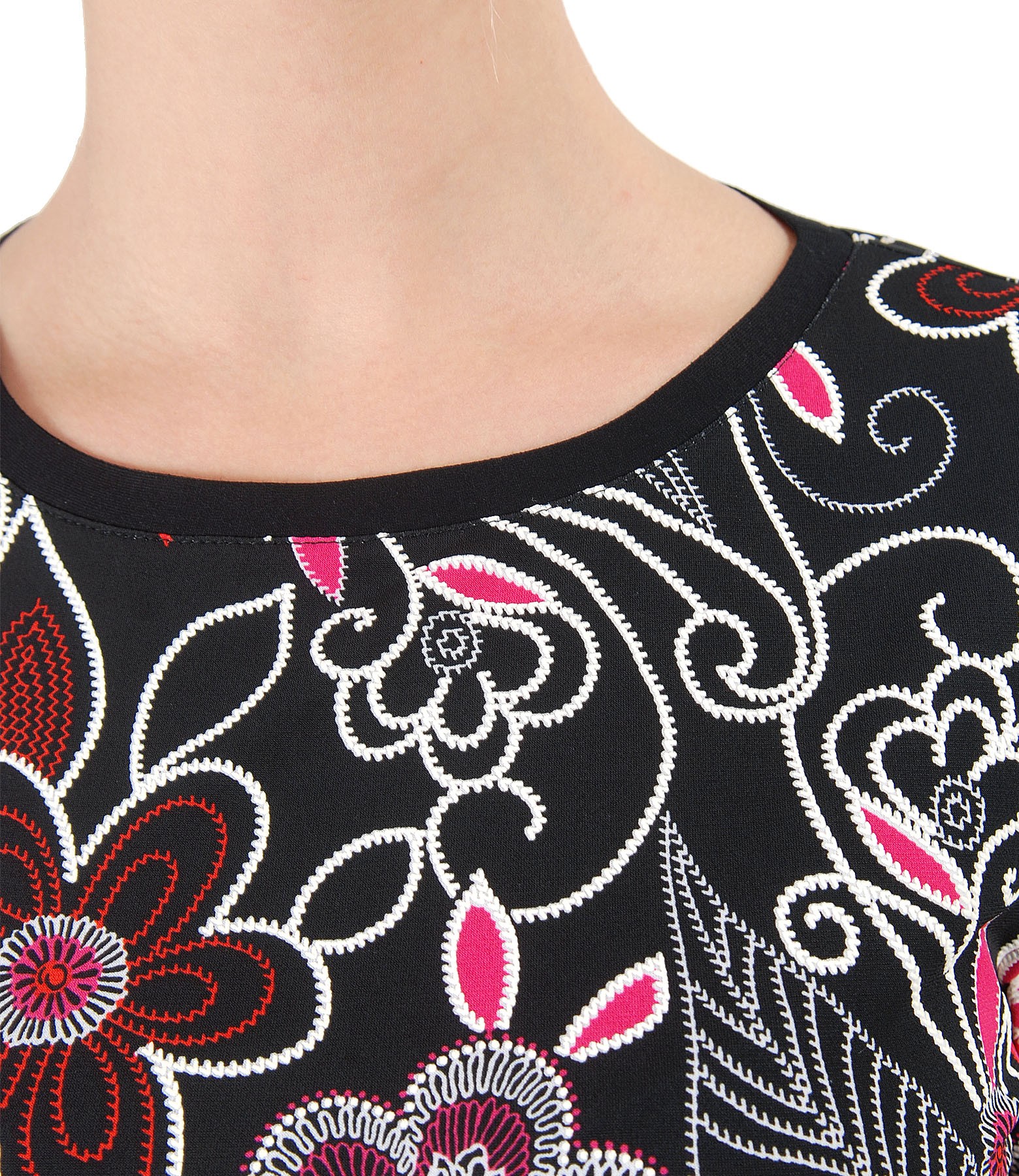 Elastic jersey blouse with embossed print, with short sleeves and trim.