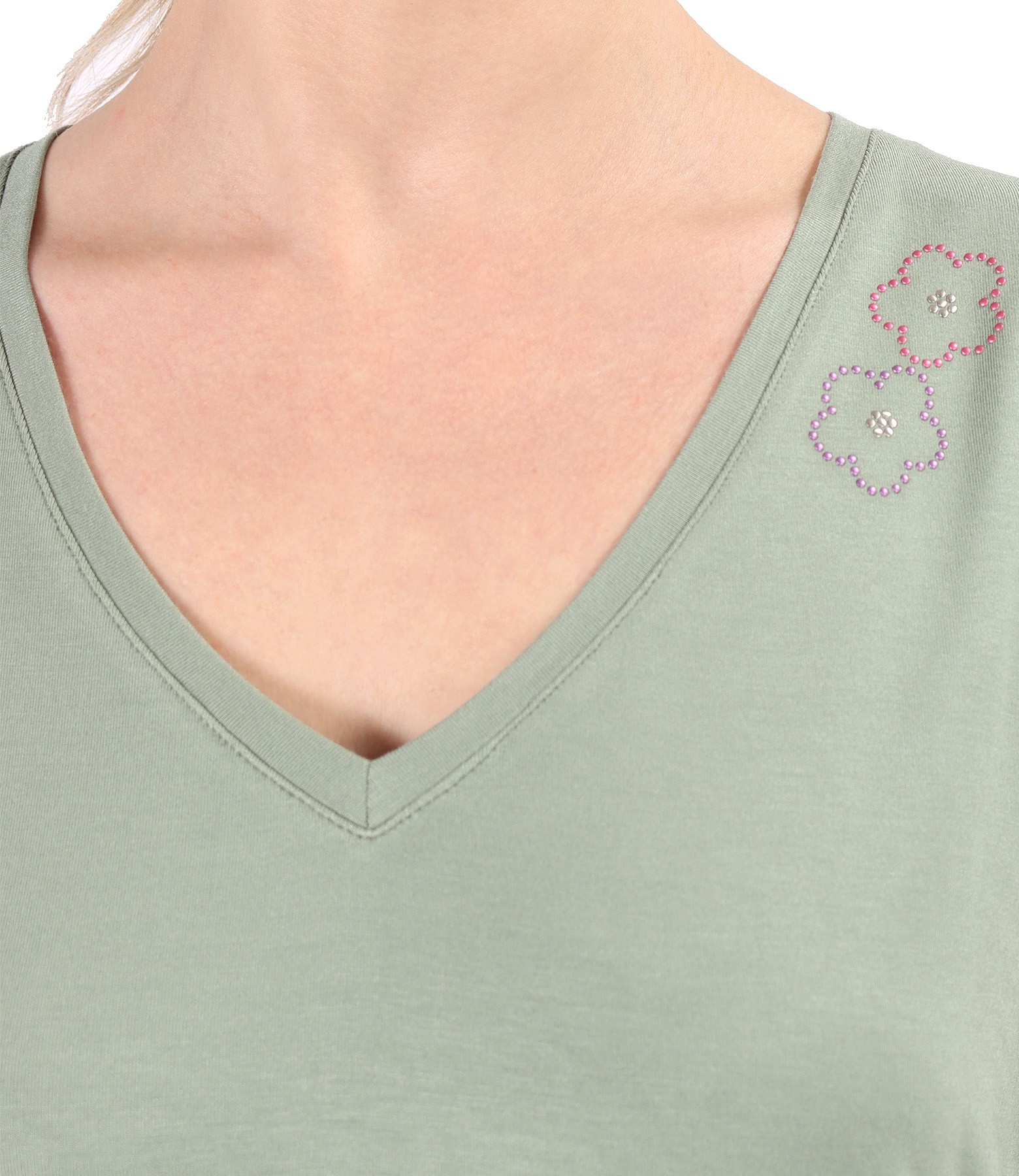 Elastic jersey blouse with flowers applied to the neckline (Green), size