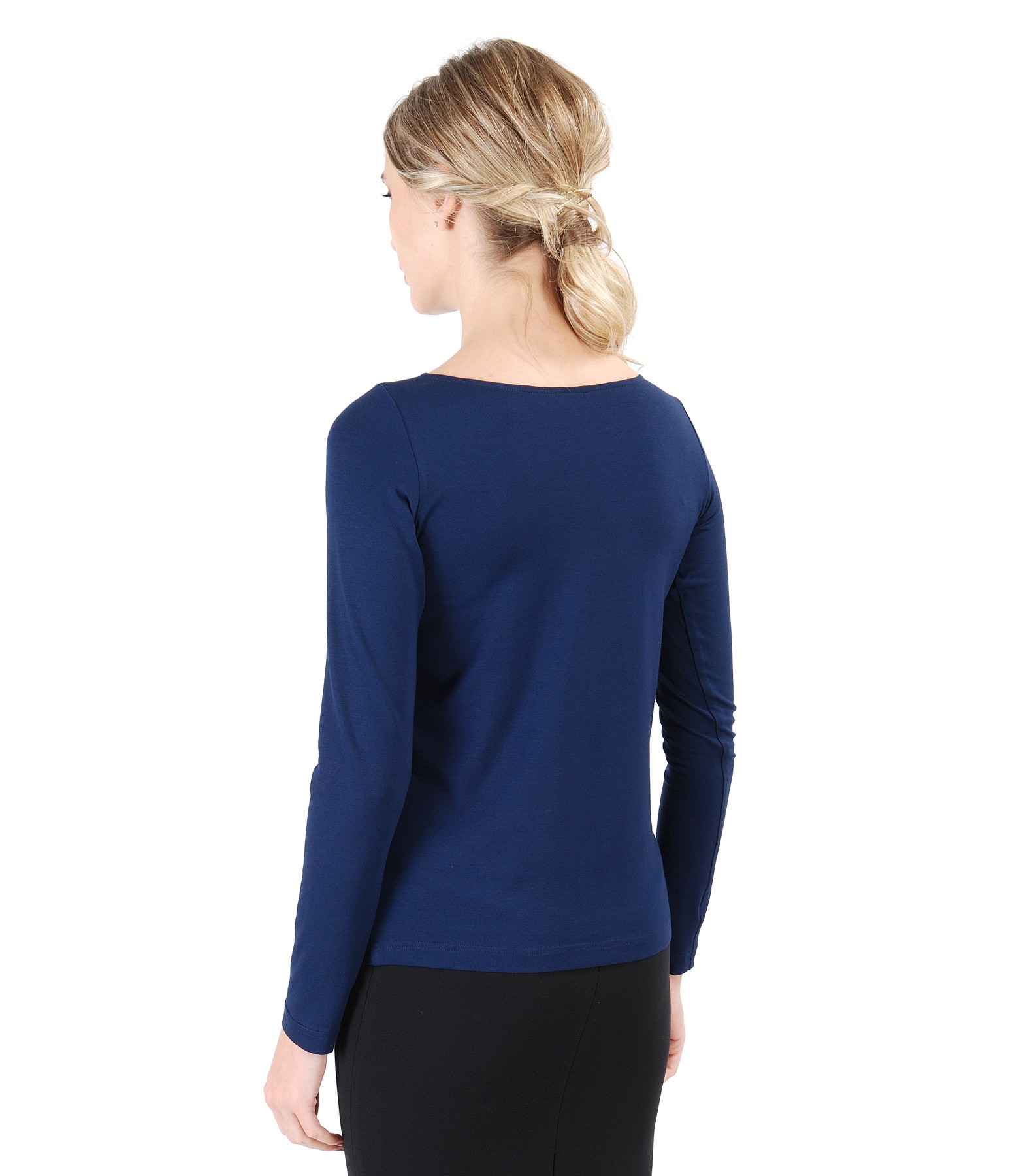 Elastic jersey blouse with fold and crystals (Dark blue), size