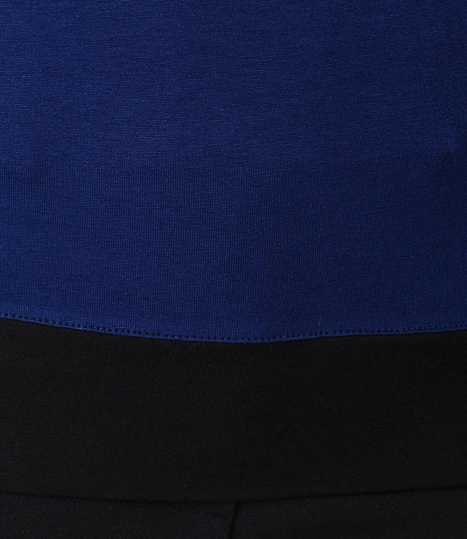 Uni elastic jersey blouse, with 3/4 sleeves, ornament glued to the face and contrast trim at the neckline and sleeve finish.