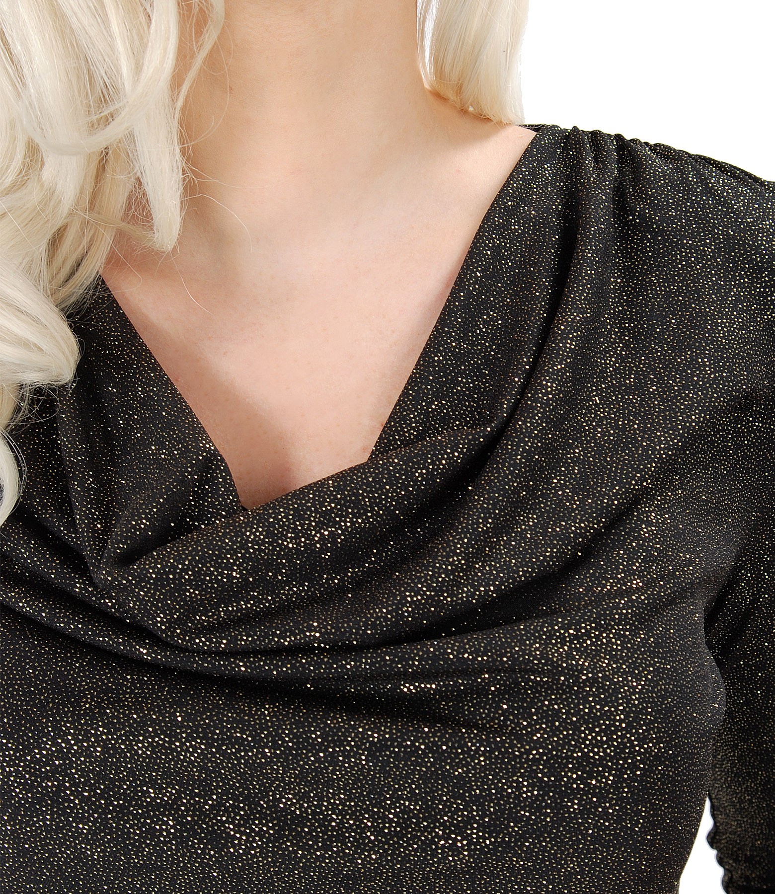 Shirt made of elastic jersey with a gloss effect, with 3/4 sleeves and neckline in folds.