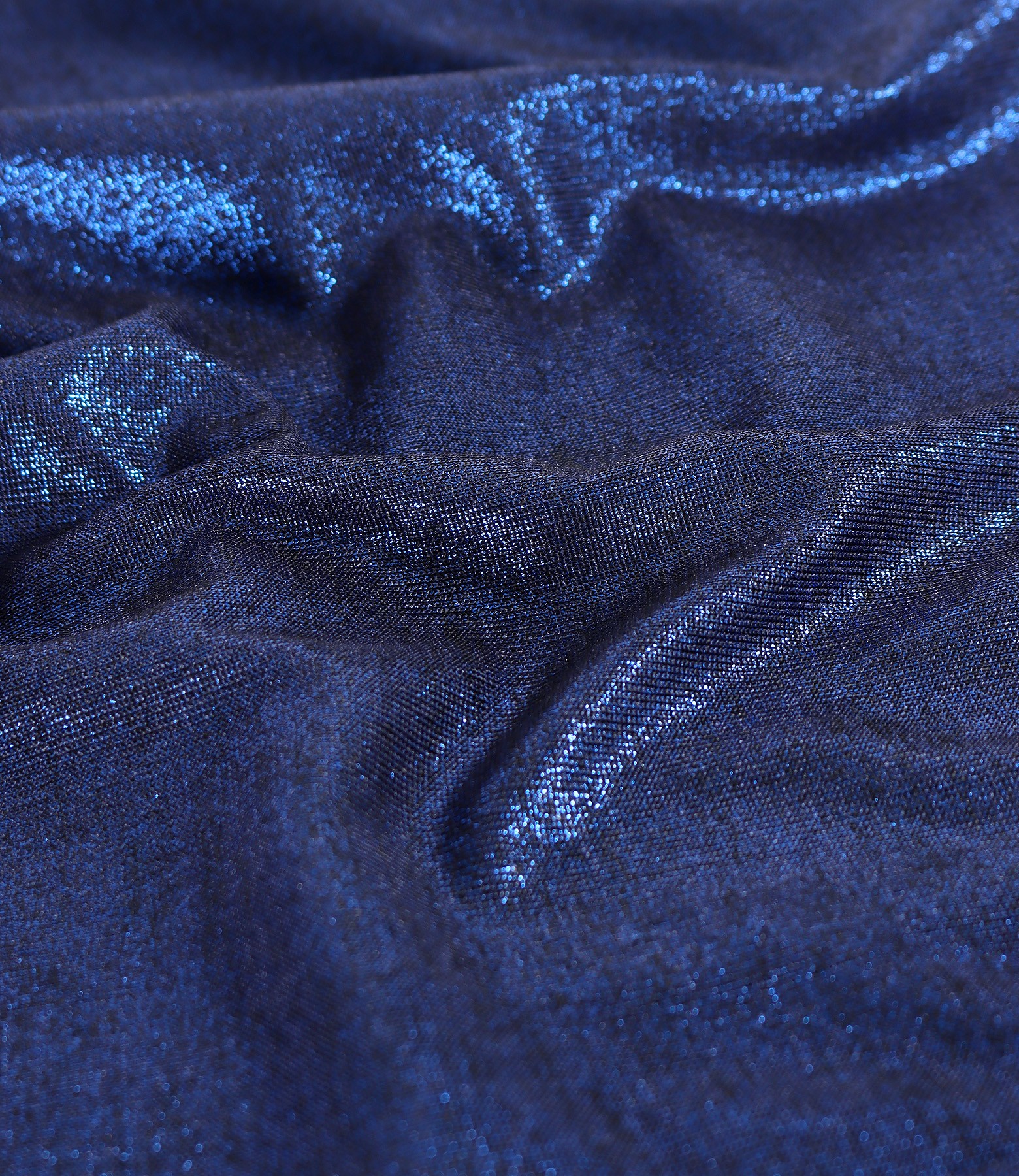 Elastic jersey blouse with glossy effect with pleats at the neckline (Blue), size