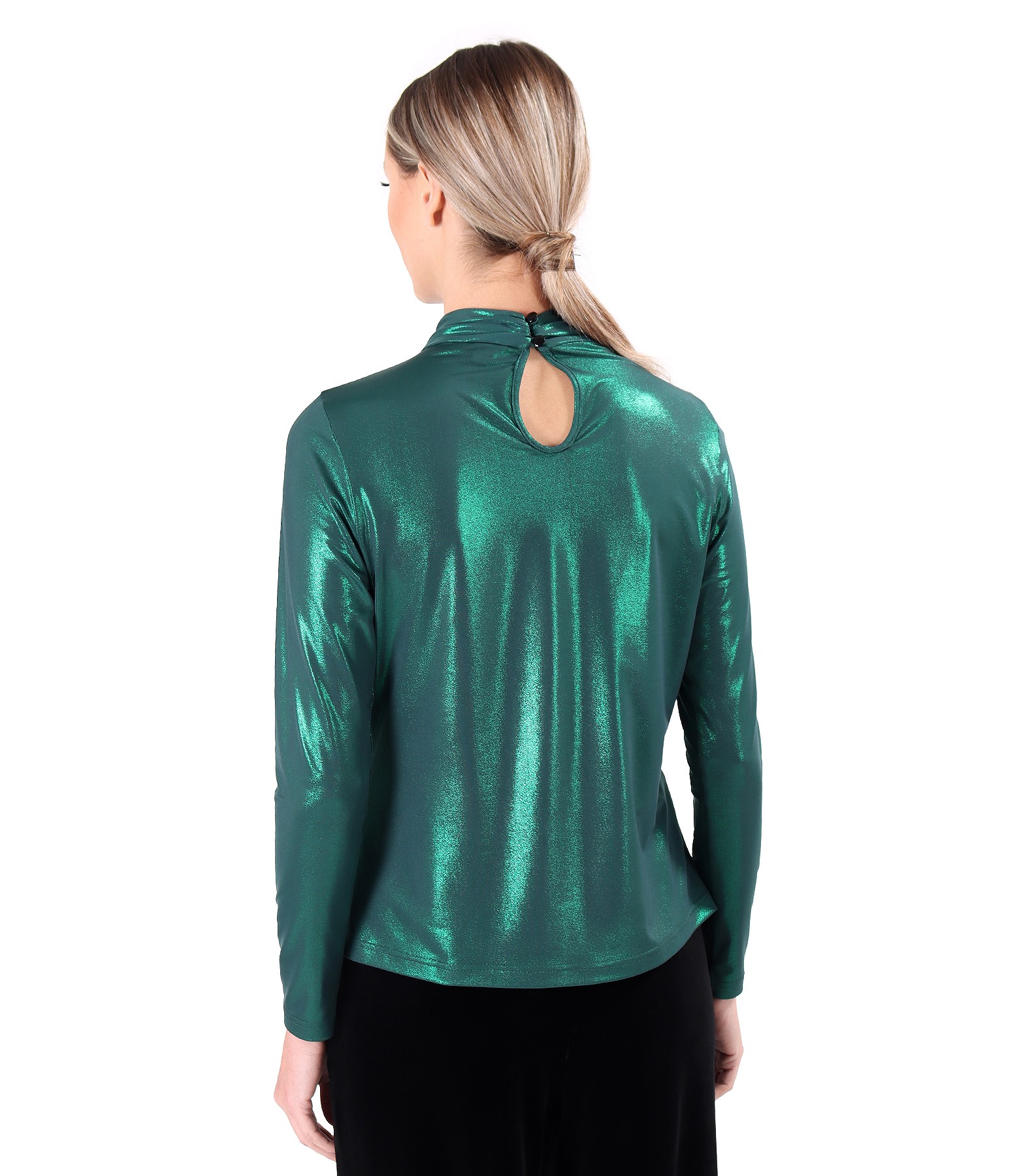 Elastic jersey blouse with glossy effect with pleats at the neckline (Emerald Green), size
