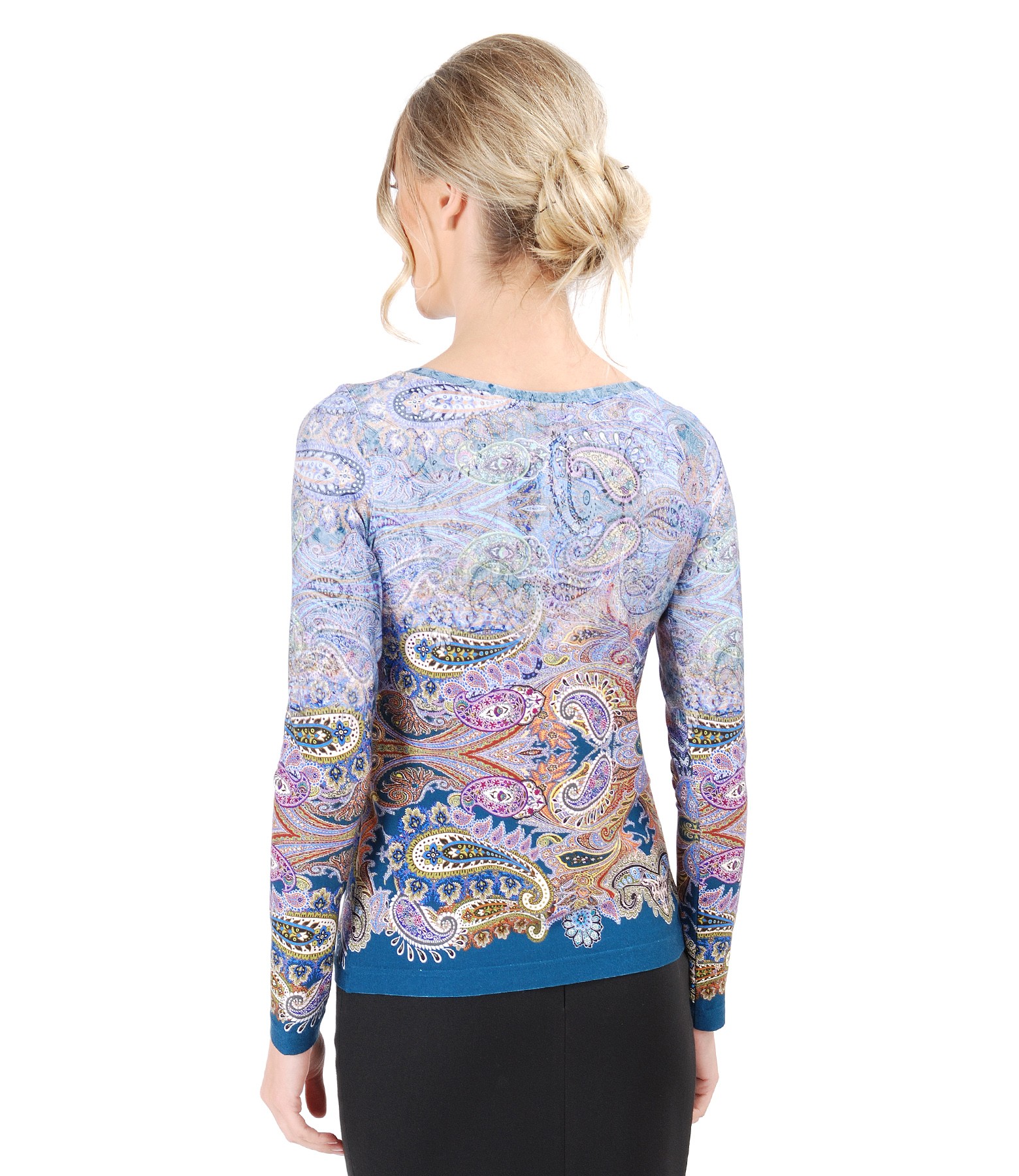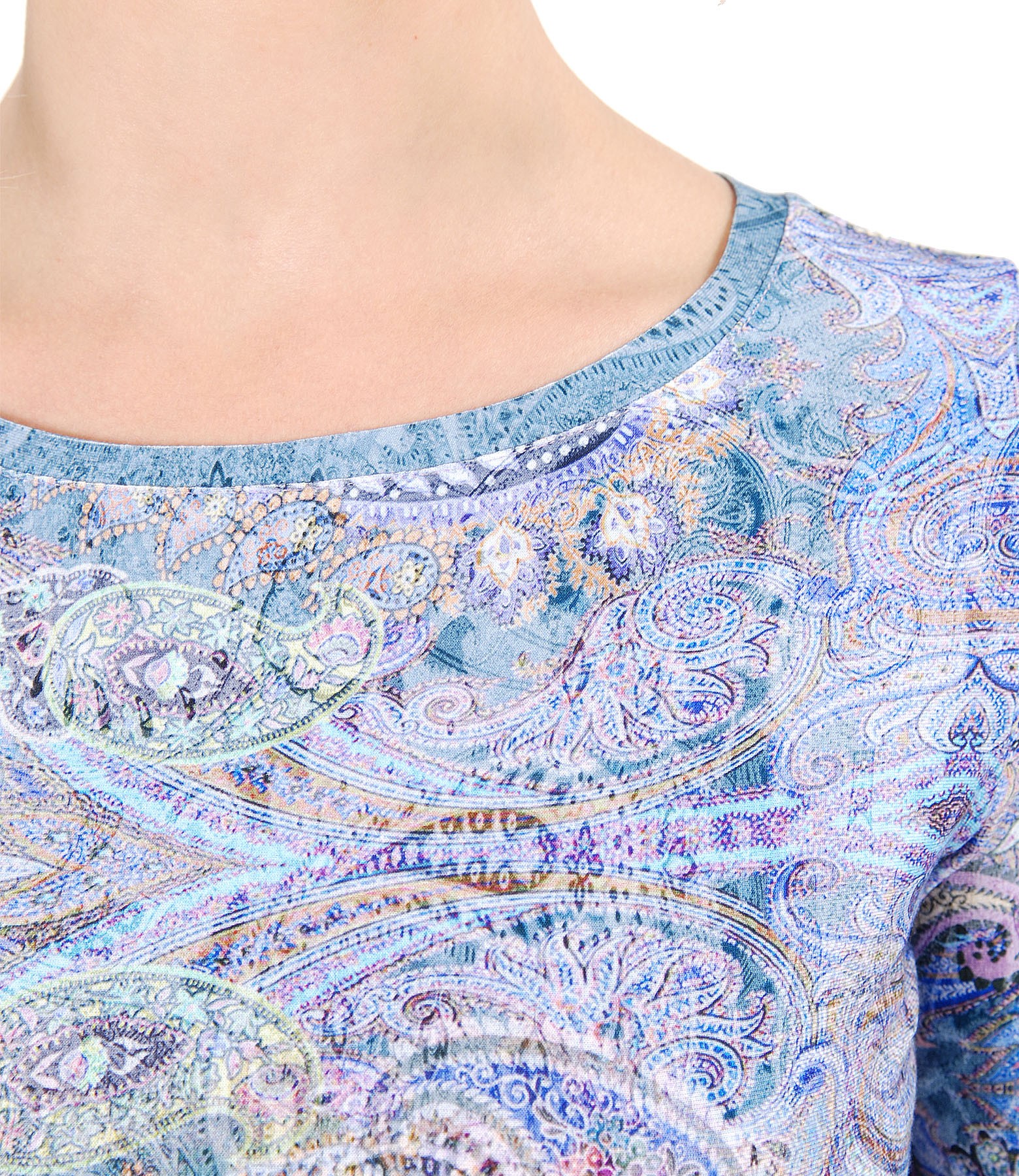Elastic jersey blouse with digital floral print, long sleeves and round low-cut neck.