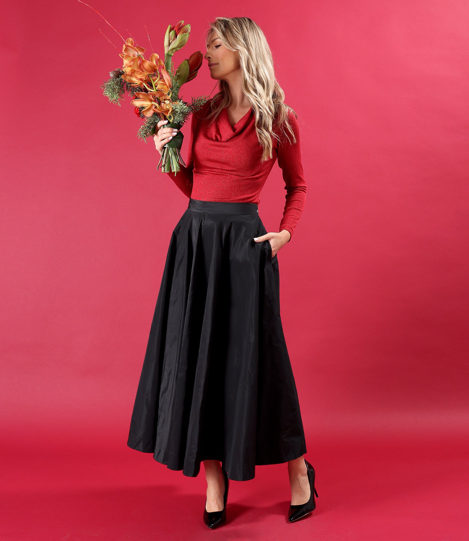Elastic jersey blouse with metallic thread and pleated neckline (Red), size
