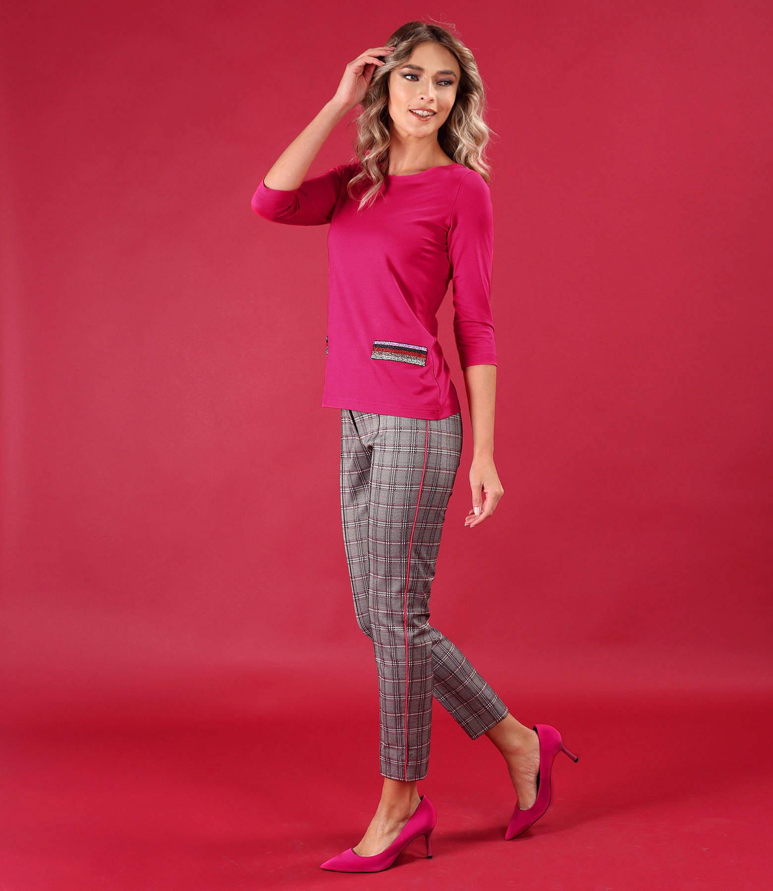 Elastic jersey blouse with multicolored elastic at the waist (Cyclamen), size