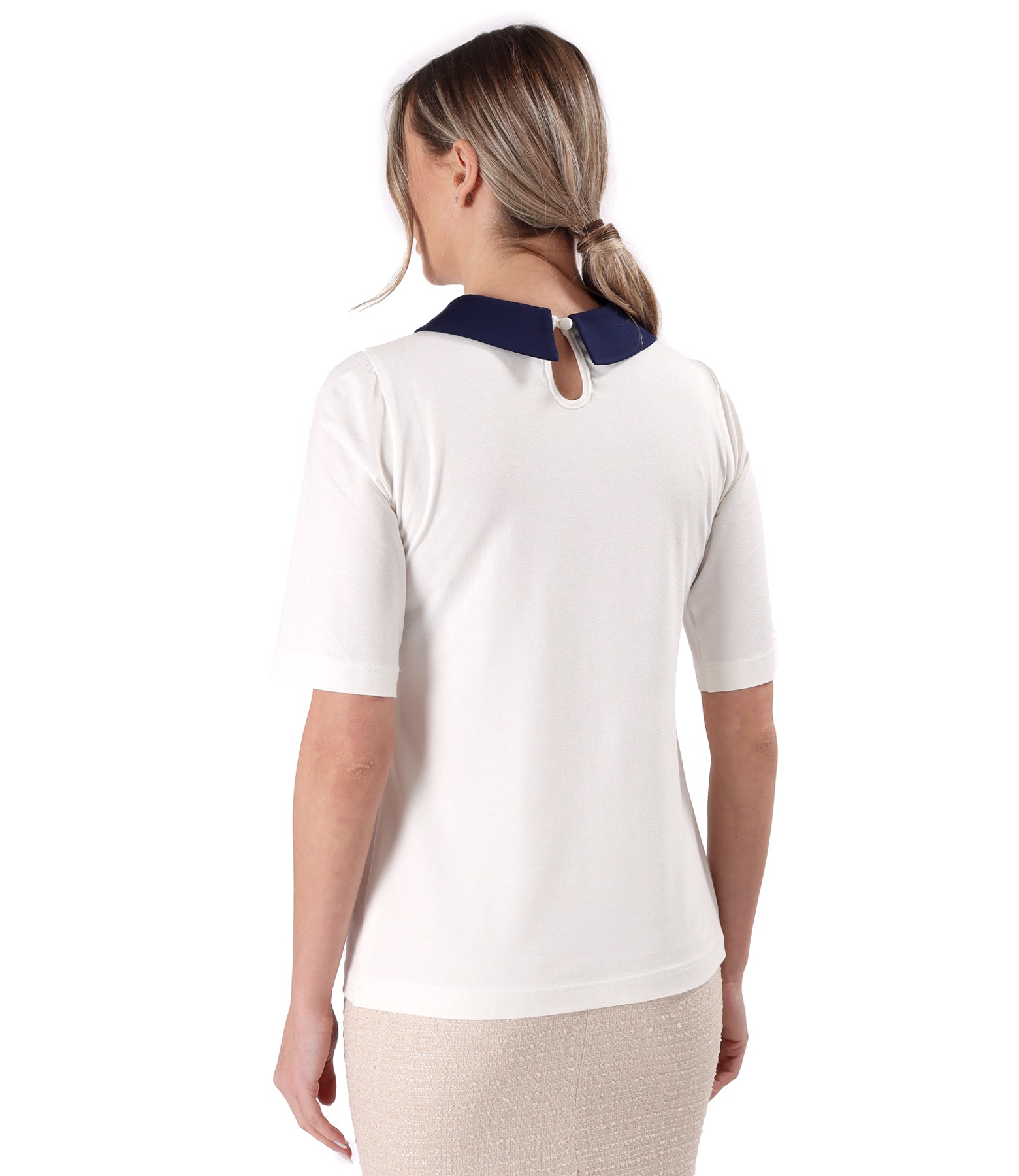Elastic jersey blouse with navy blue collar (Ivory), size