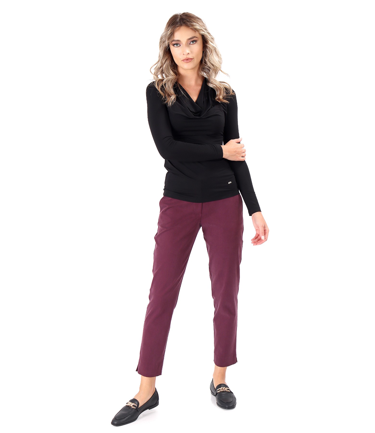Elastic jersey blouse with pleated neckline